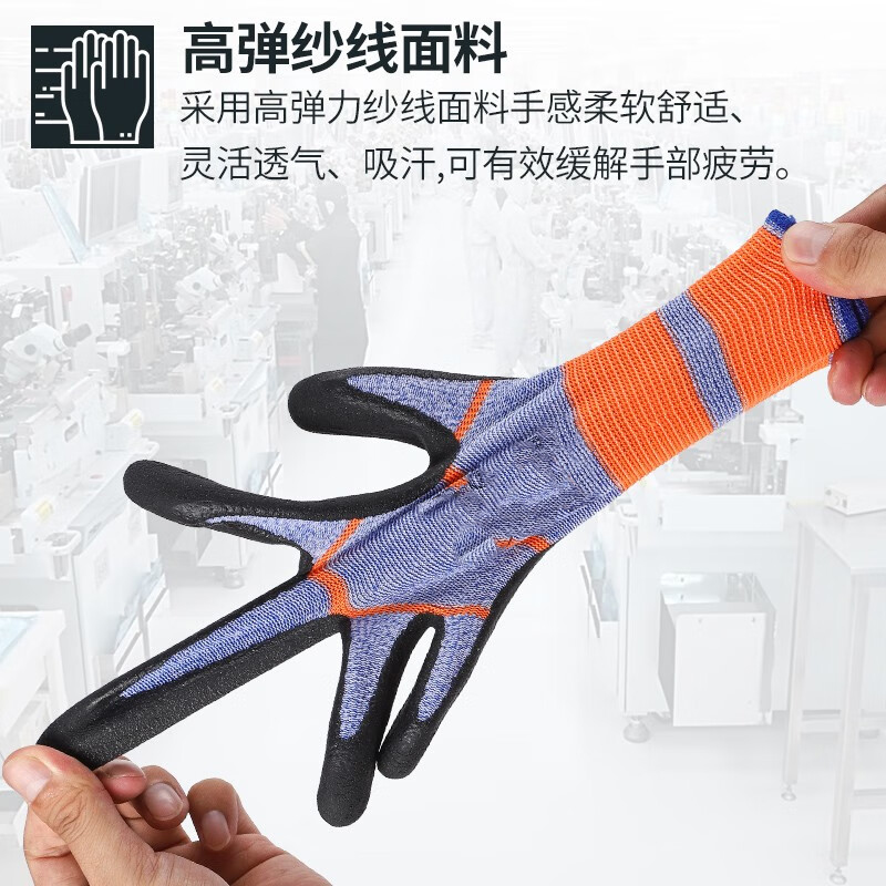 旭利达 达弹力王劳保手套浸胶耐磨乳胶发泡磨砂防滑胶手套 弹力王胶手套