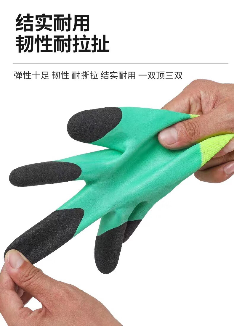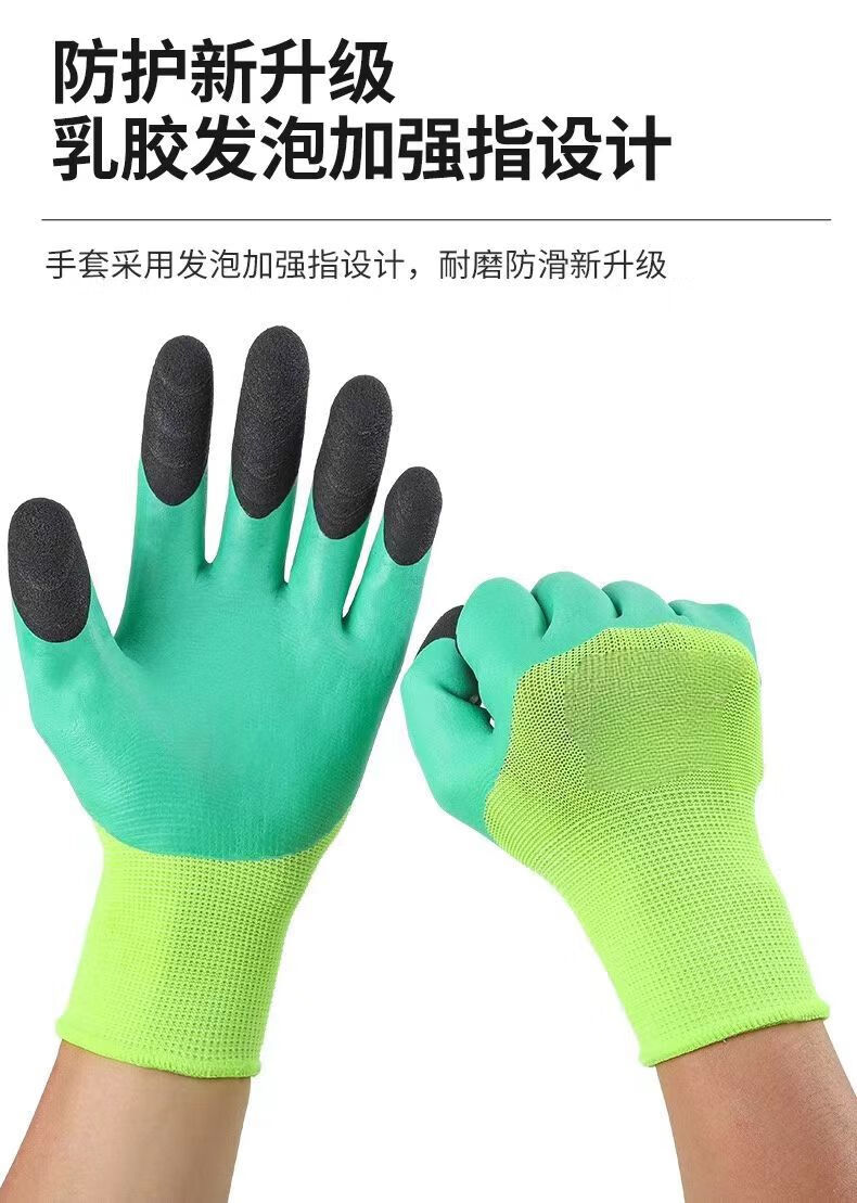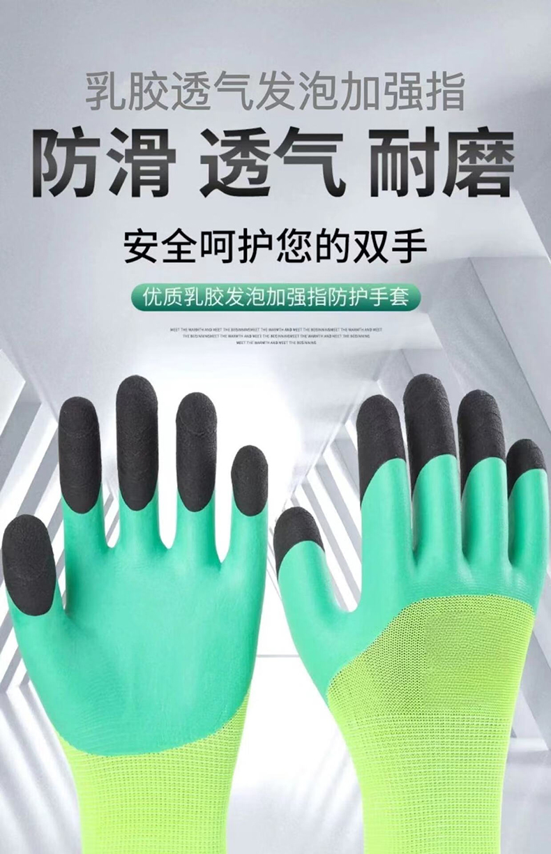 包装清单:付旭利达 透气王加强指乳胶发泡浸胶劳保手套 大黄蜂半挂皱纹手套浸胶劳保防护手套