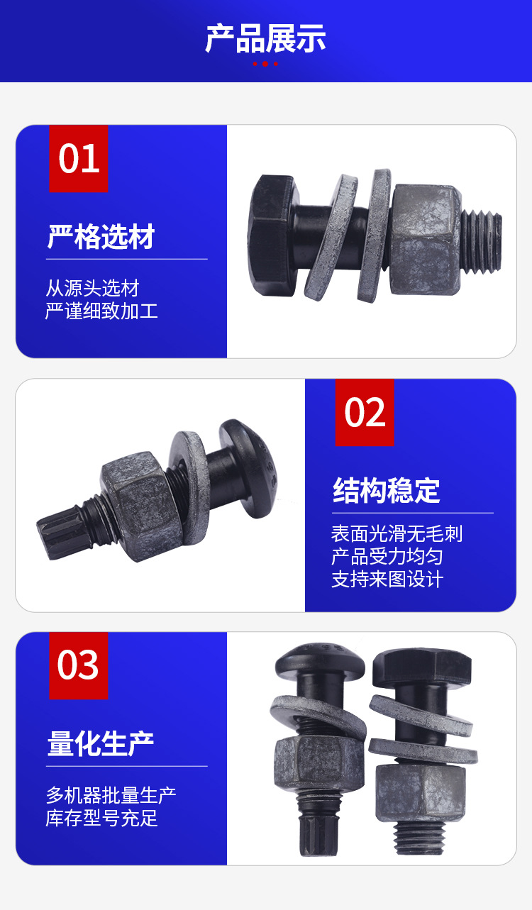 商品名称:冀螺钢结构大六角头螺栓 连接副 扭剪型螺丝钢架构高强度