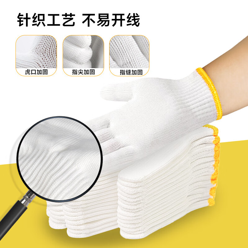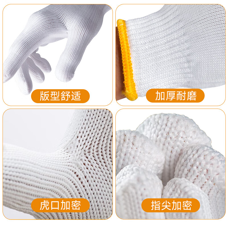 包装清单:1尼龙线手套 红边线手套 劳保手套
