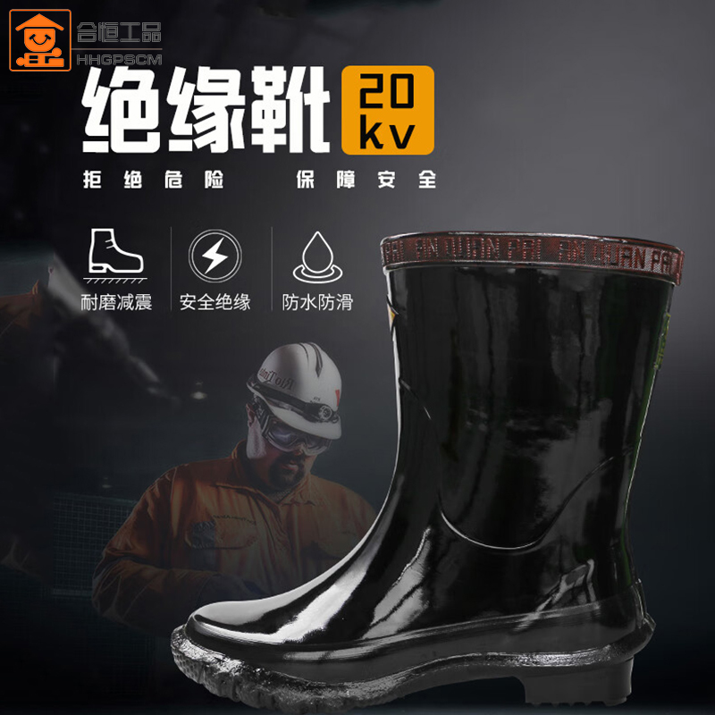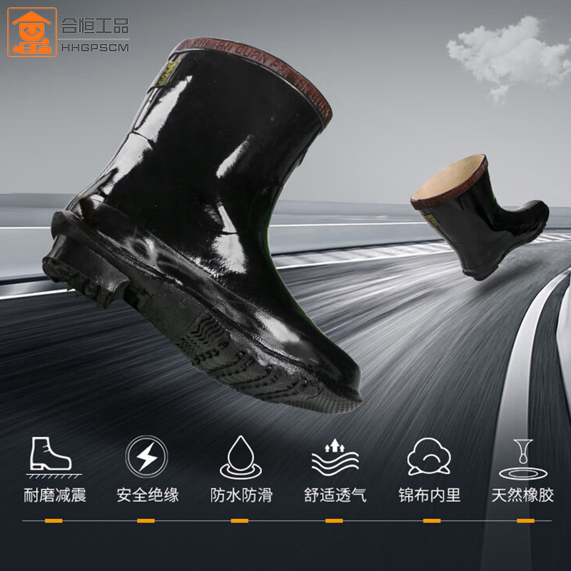 合恒工品工况橡胶雨靴高筒矿靴38cm 高筒工矿靴28cm