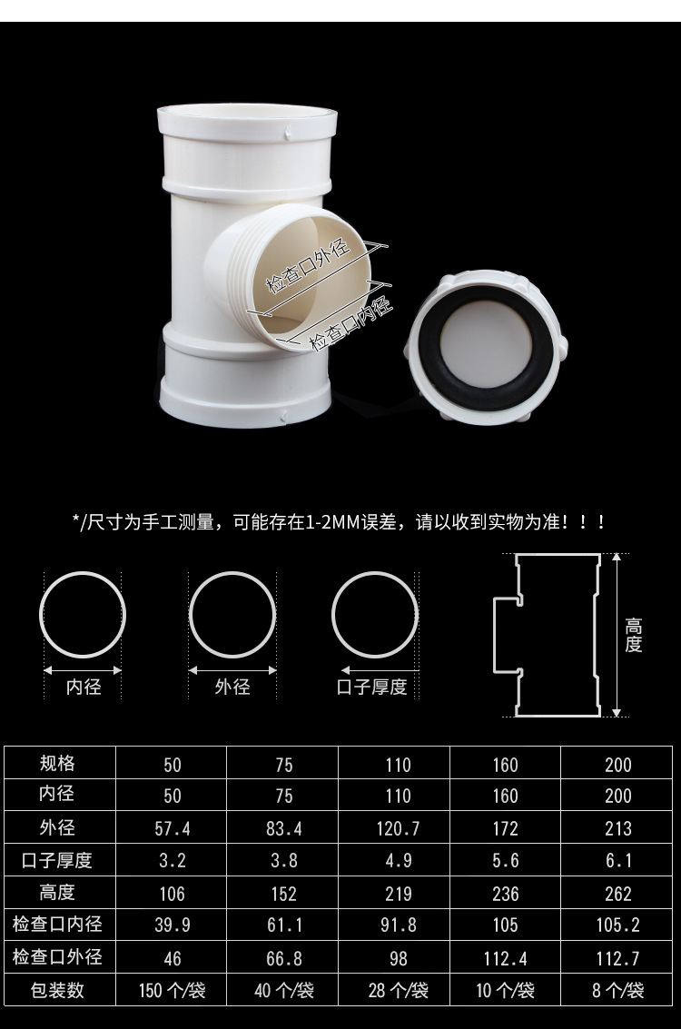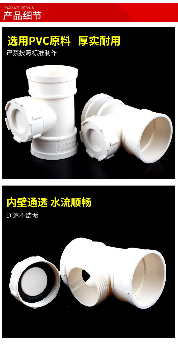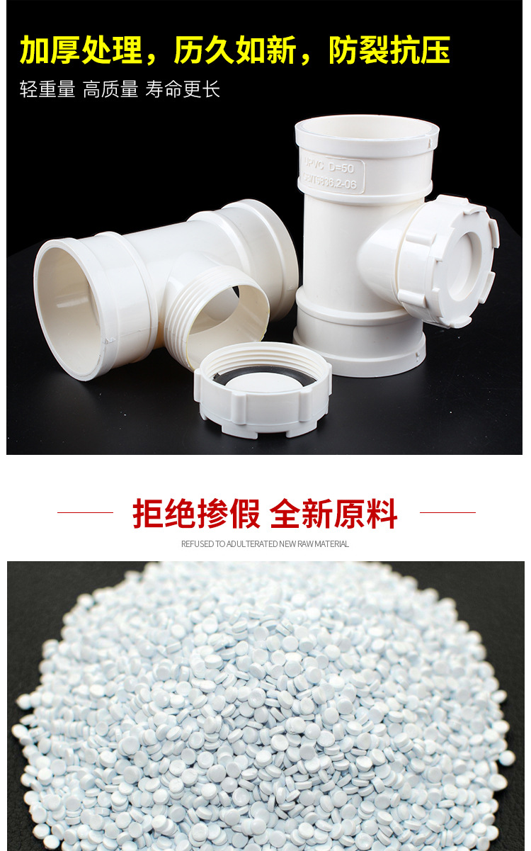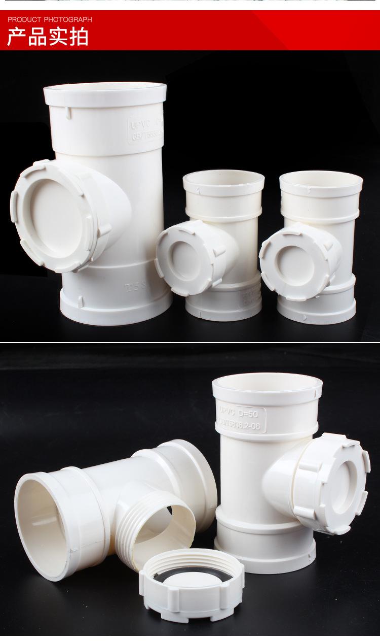 包装清单:1PVC排水管-立管检查口 PVC立检 排水管立管检查口带口三通 下水管配件