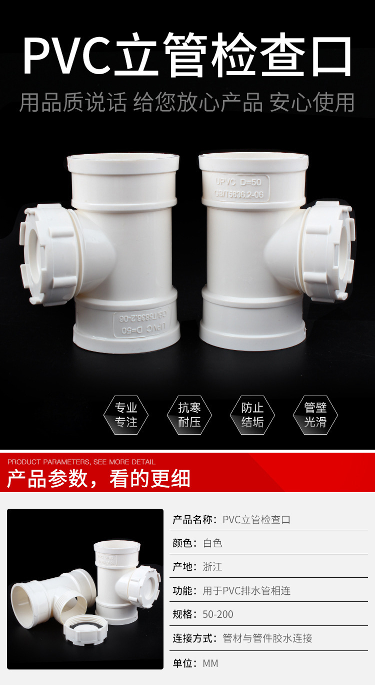 PVC排水管-立管检查口 PVC立检 排水管立管检查口带口三通 下水管配件