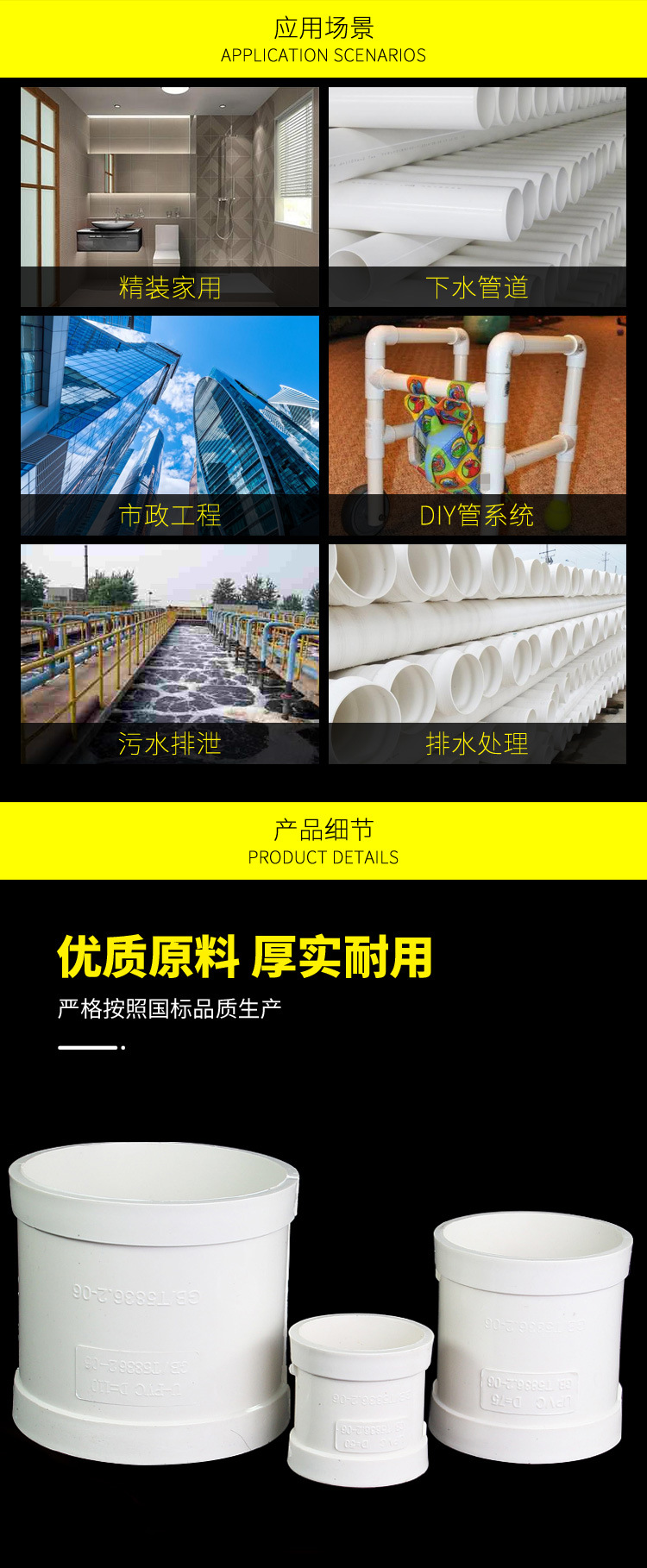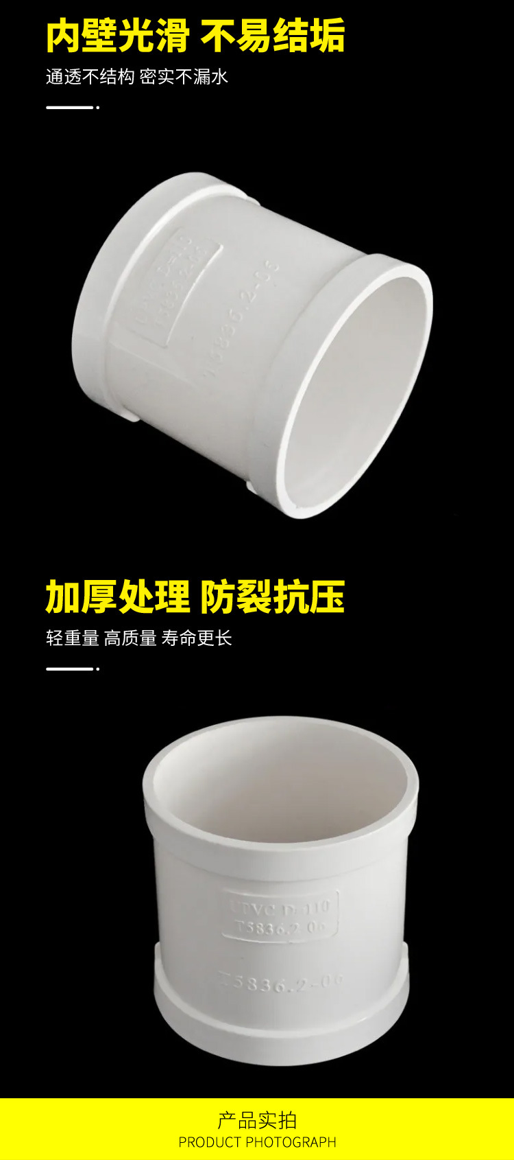 包装清单:1直通(管箍) PVC直接 管箍 排水管直通接头