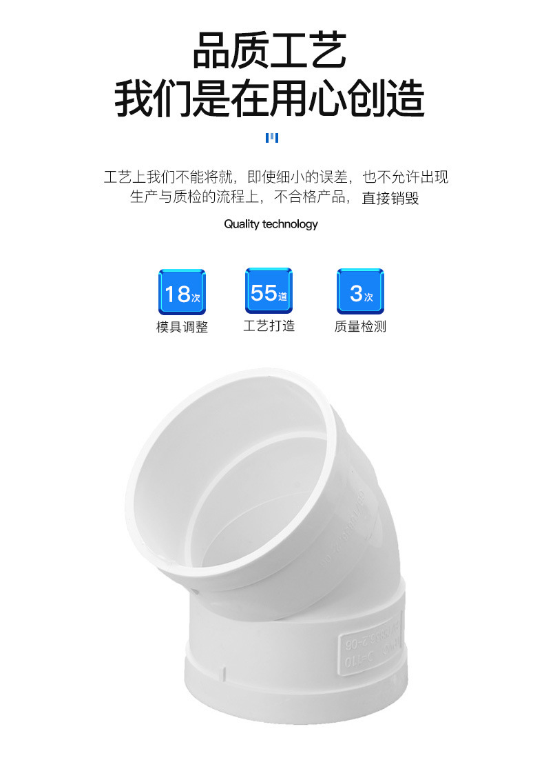 商品名称:45°弯头PVC排水直弯下水管弯头 小弯规格齐全 45度弯头