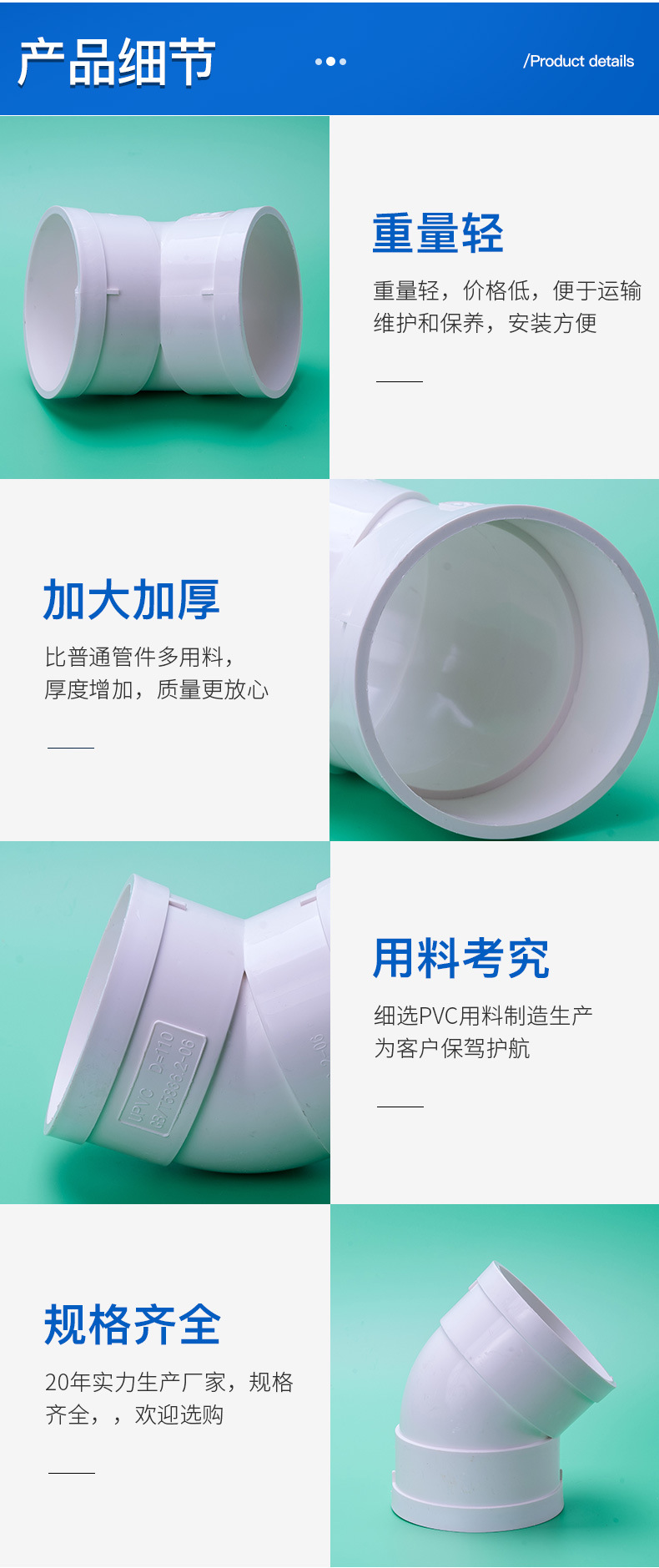 包装清单:145°弯头PVC排水直弯下水管弯头 小弯规格齐全 45度弯头