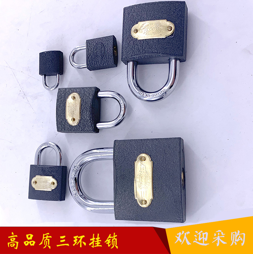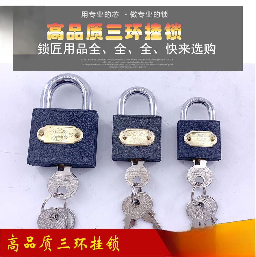 三环锁铁锁挂锁长梁长柄锁通开互开锁仓库大门宿舍柜门防盗小锁头