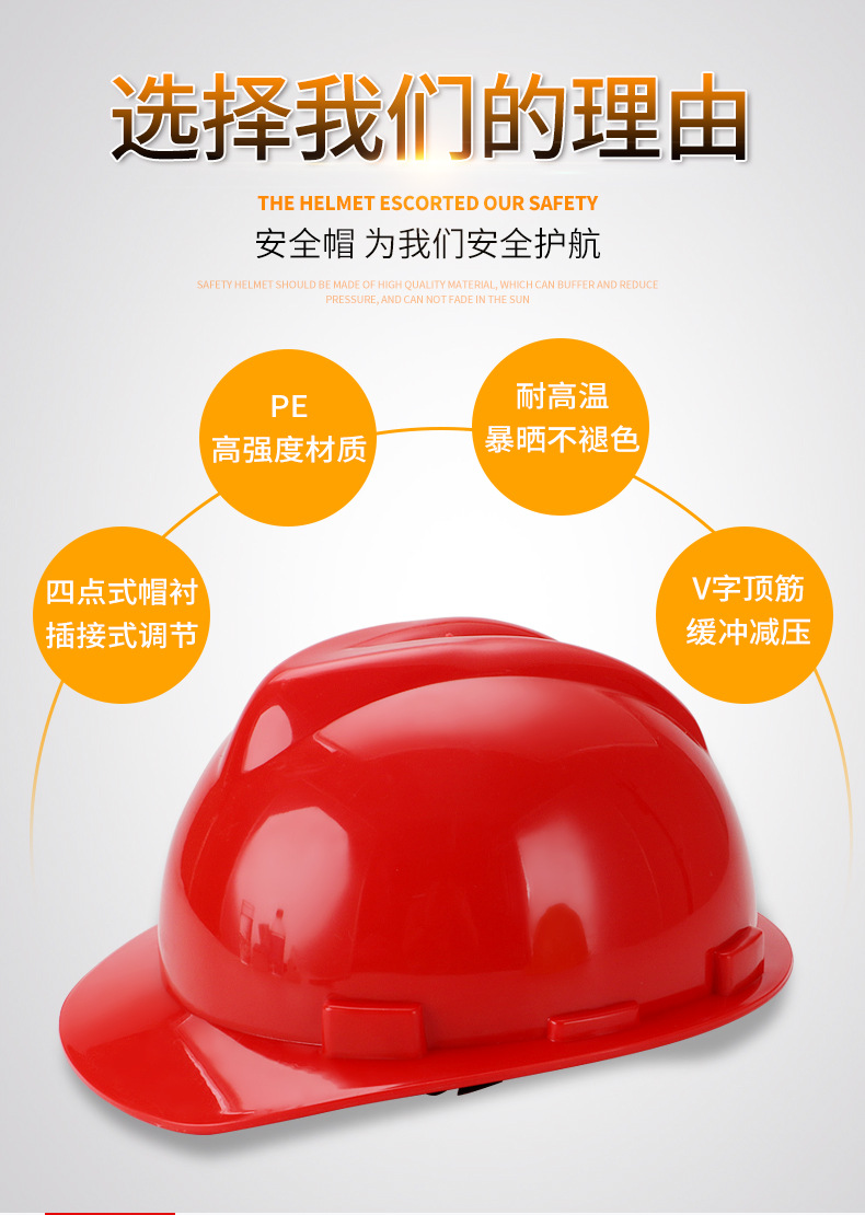 商品名称:嘉运旋钮式 390g 安全帽工地施工六点式内衬建筑工程劳保国标防护透气工地头盔