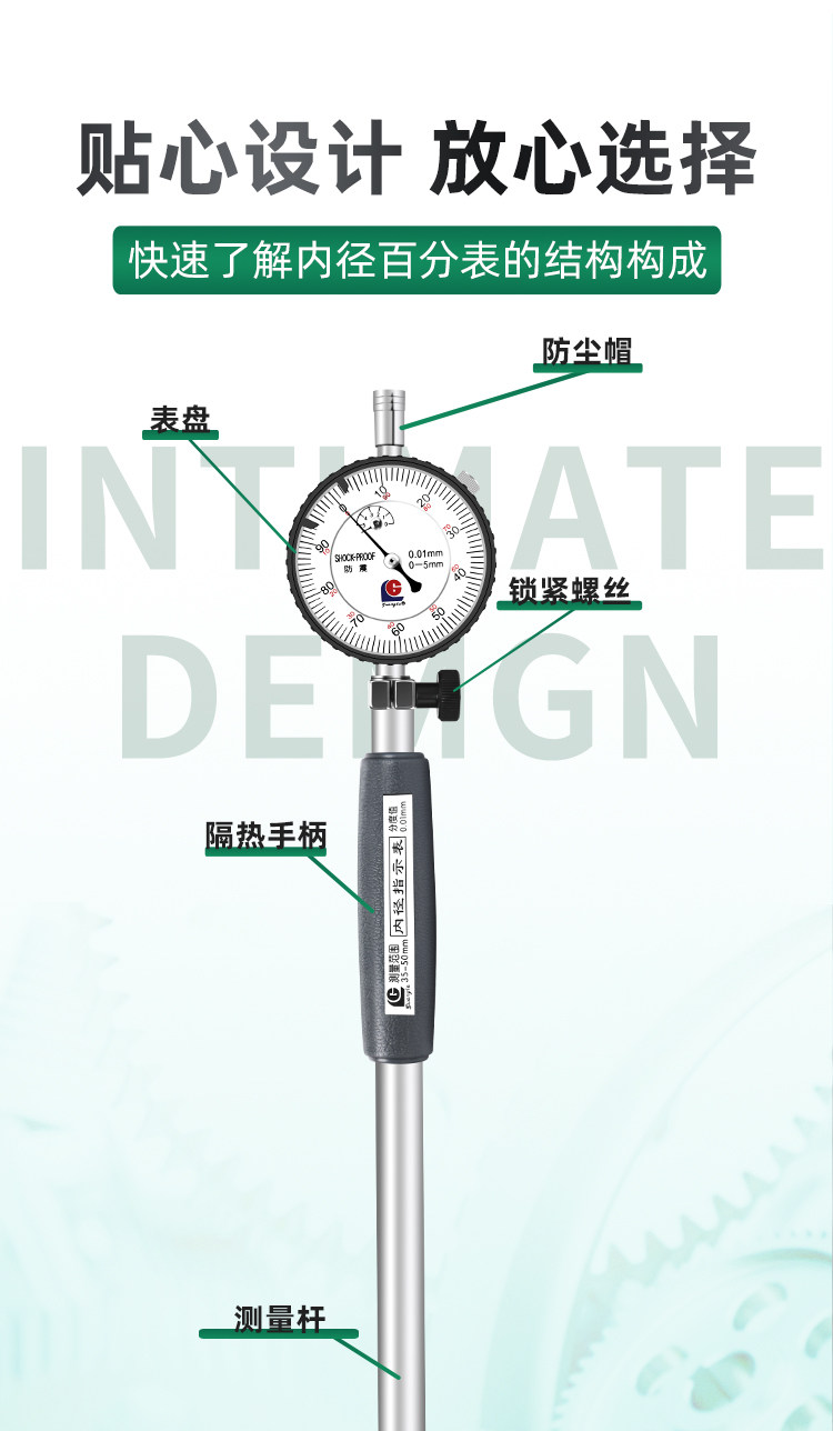 商品名称:内径百分表护桥式量缸表内孔直径测量6-10-18-35-50mm