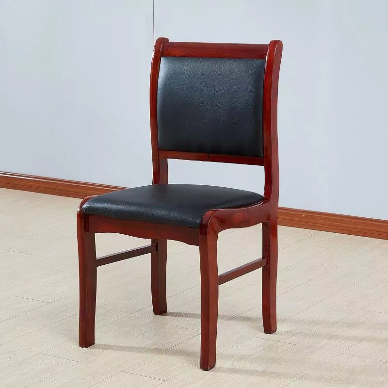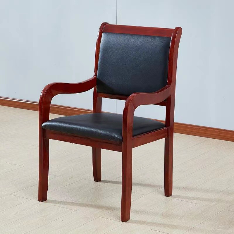实木办公会议椅 四脚椅子牌室麻将皮椅子带扶手培训职员椅可定制