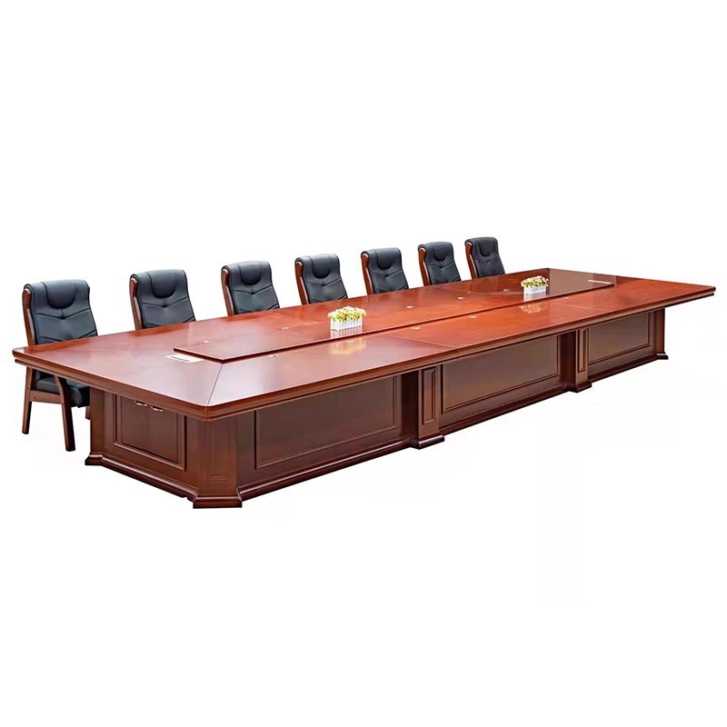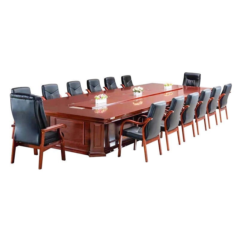 长方形条形中式办公家具厂家实木木皮会议桌大型会议桌油漆会议桌可定制