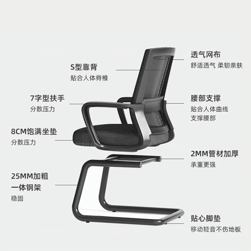 简约家用椅子职员久坐升降靠背电脑椅人体网布弓形办公椅