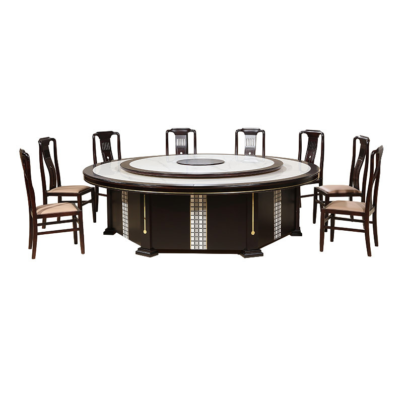 酒店餐桌大圆桌饭桌新中式岩板电动圆桌电磁炉会所包厢可定制