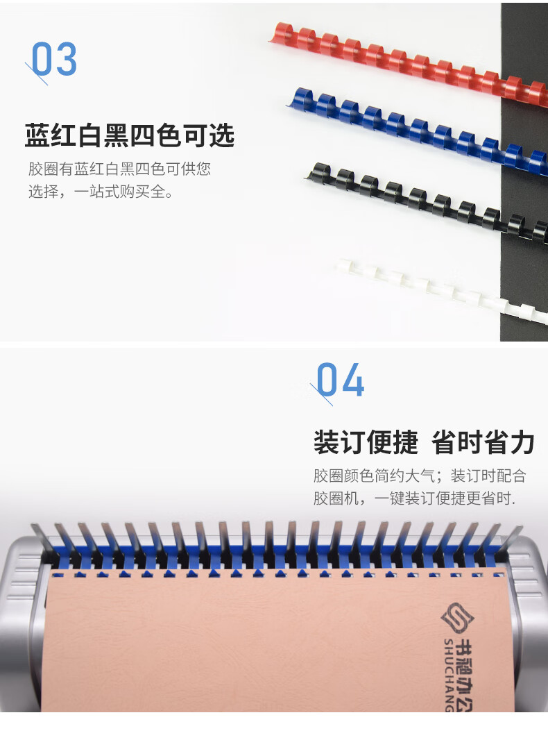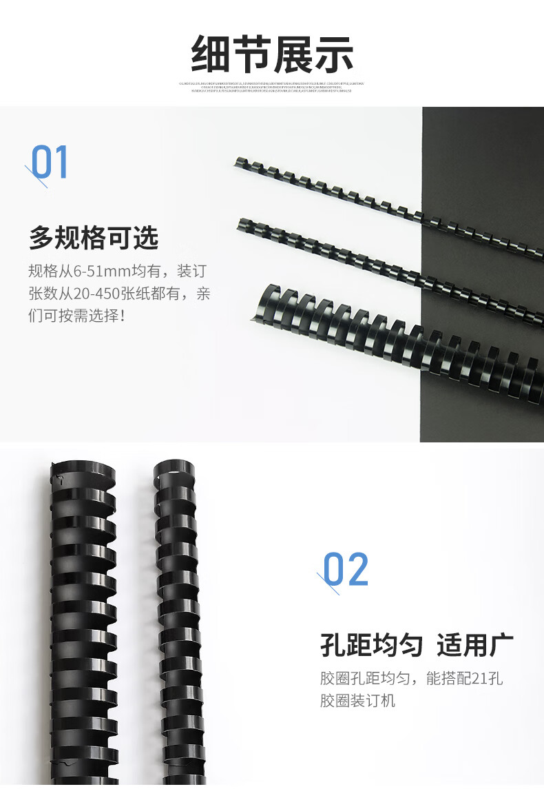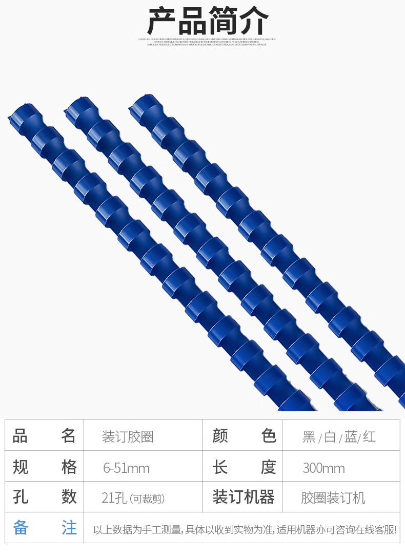 包装清单:121孔塑料胶圈活页环21孔胶圈装订机耗材 21孔梳式胶圈活页装订圈