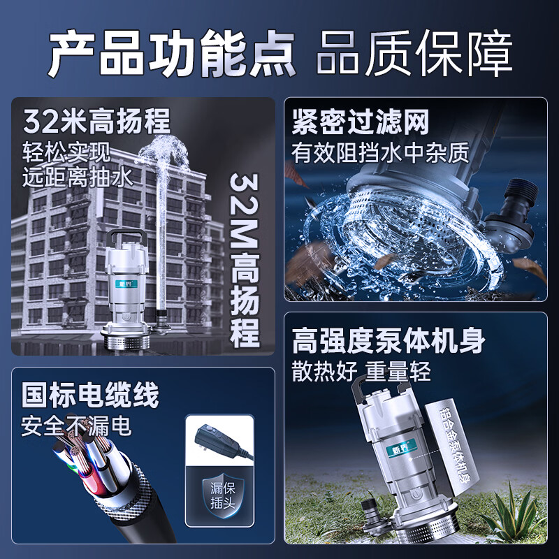 潜水泵 农田灌溉抽水泵农用铸铝排水泵家用220V 750瓦1.5方32米(1寸)