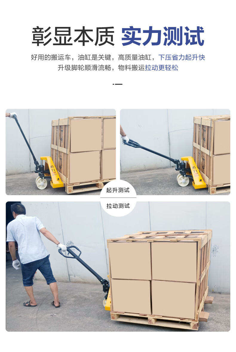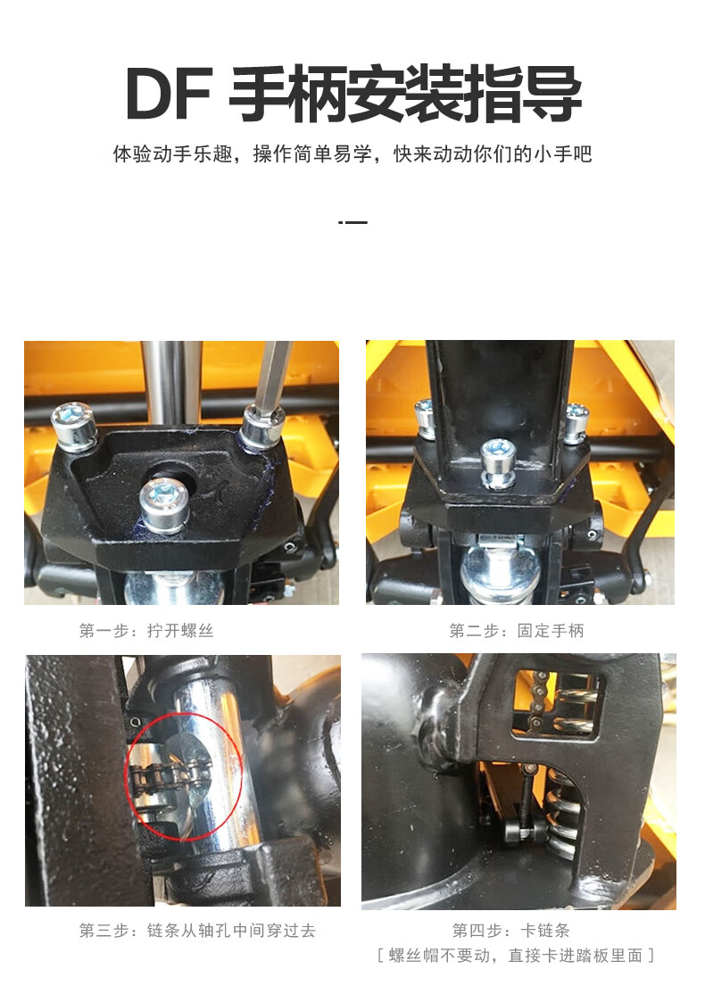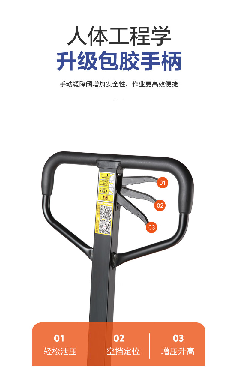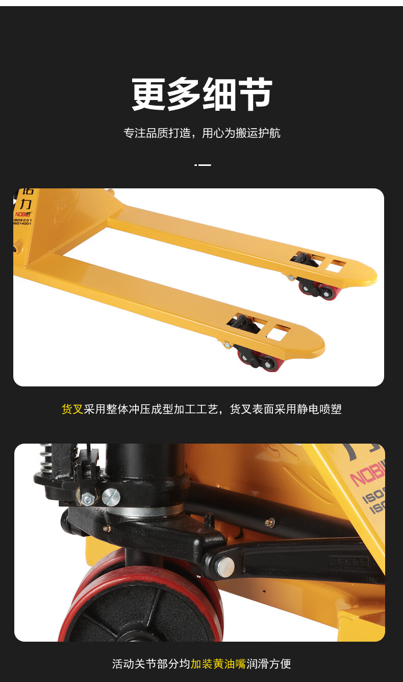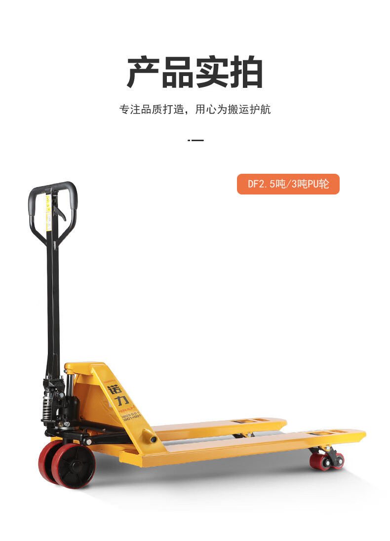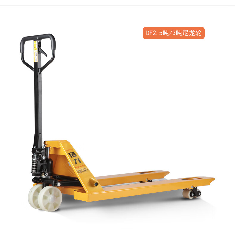 包装清单:1 诺力(NOBLELIFT) 手动地牛 DF3吨液压托盘搬运叉车 外宽685叉长1220mm尼龙轮