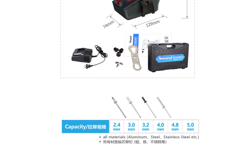 包装清单:1TDC5000电动铆钉枪 锂电铆钉枪电动铆接工具