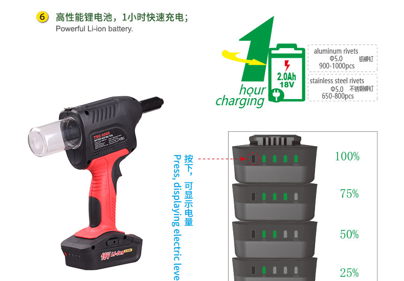 商品名称:TDC5000电动铆钉枪 锂电铆钉枪电动铆接工具