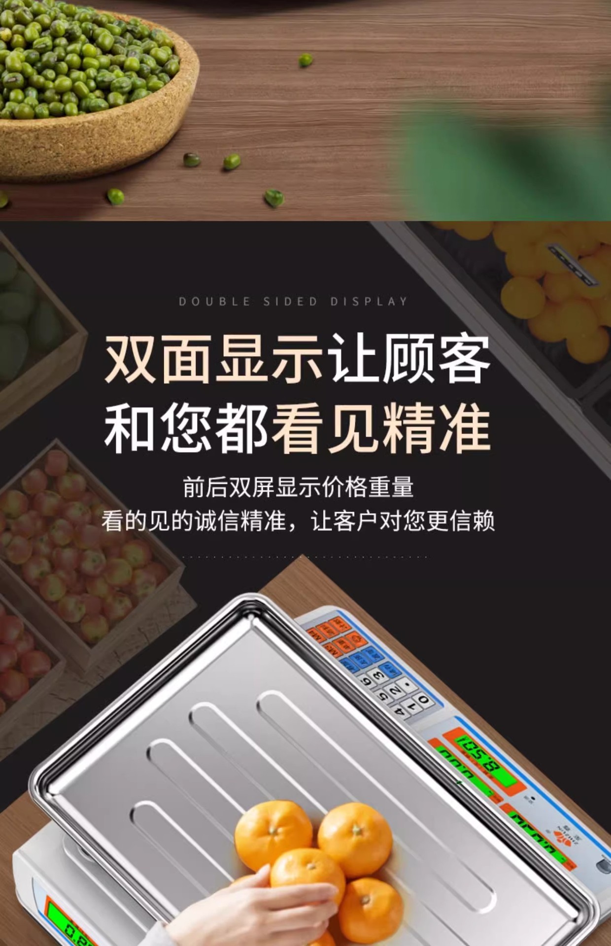 商品名称:商用计价秤高精准度计数称重卖菜水果市场防水公斤秤双显摆摊可用