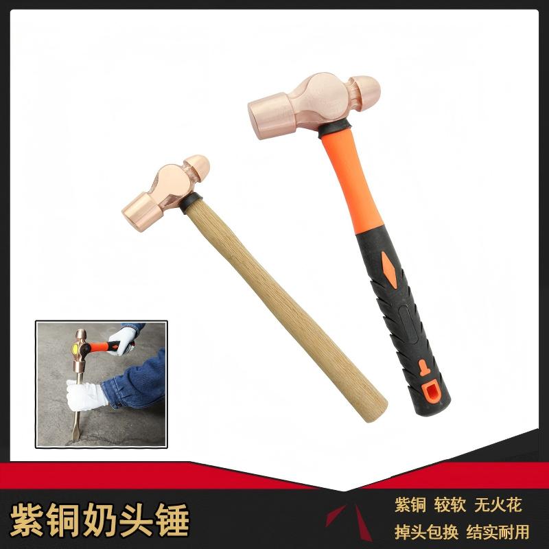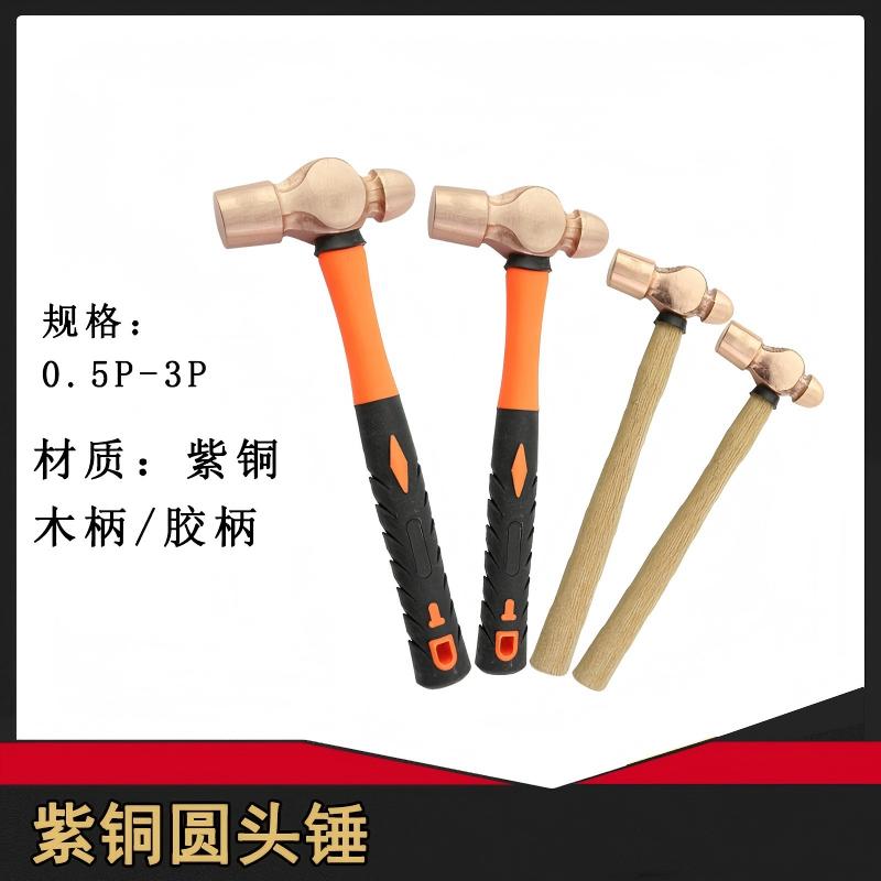 渤防紫铜奶头锤铜制圆头锤0.5-3P红铜钳工锤子1413手锤榔头小锤
