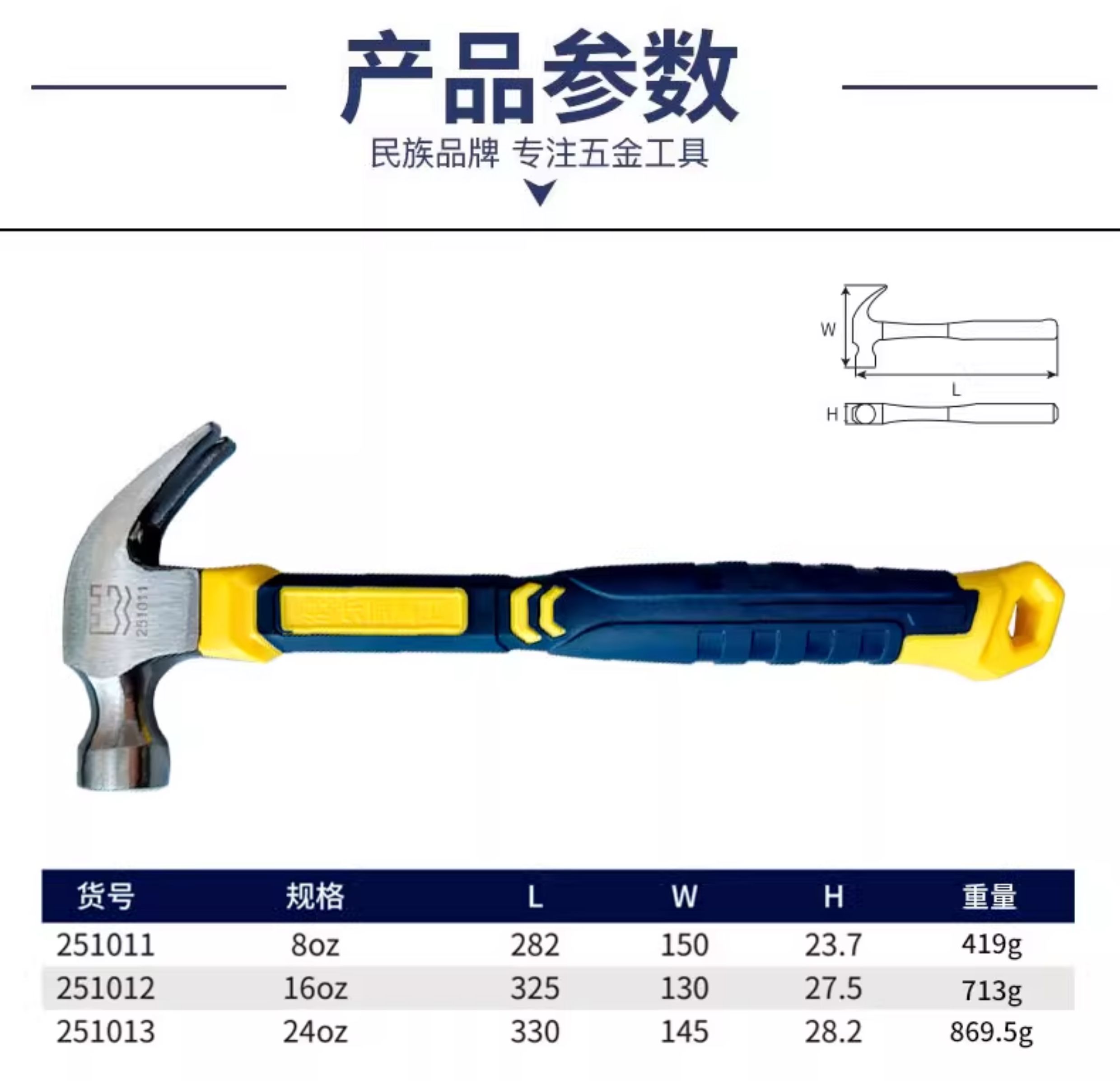 商品名称:长城精工羊角锤特钢工地用铁锤子榔头纯钢木工工具钉锤家用小手锤