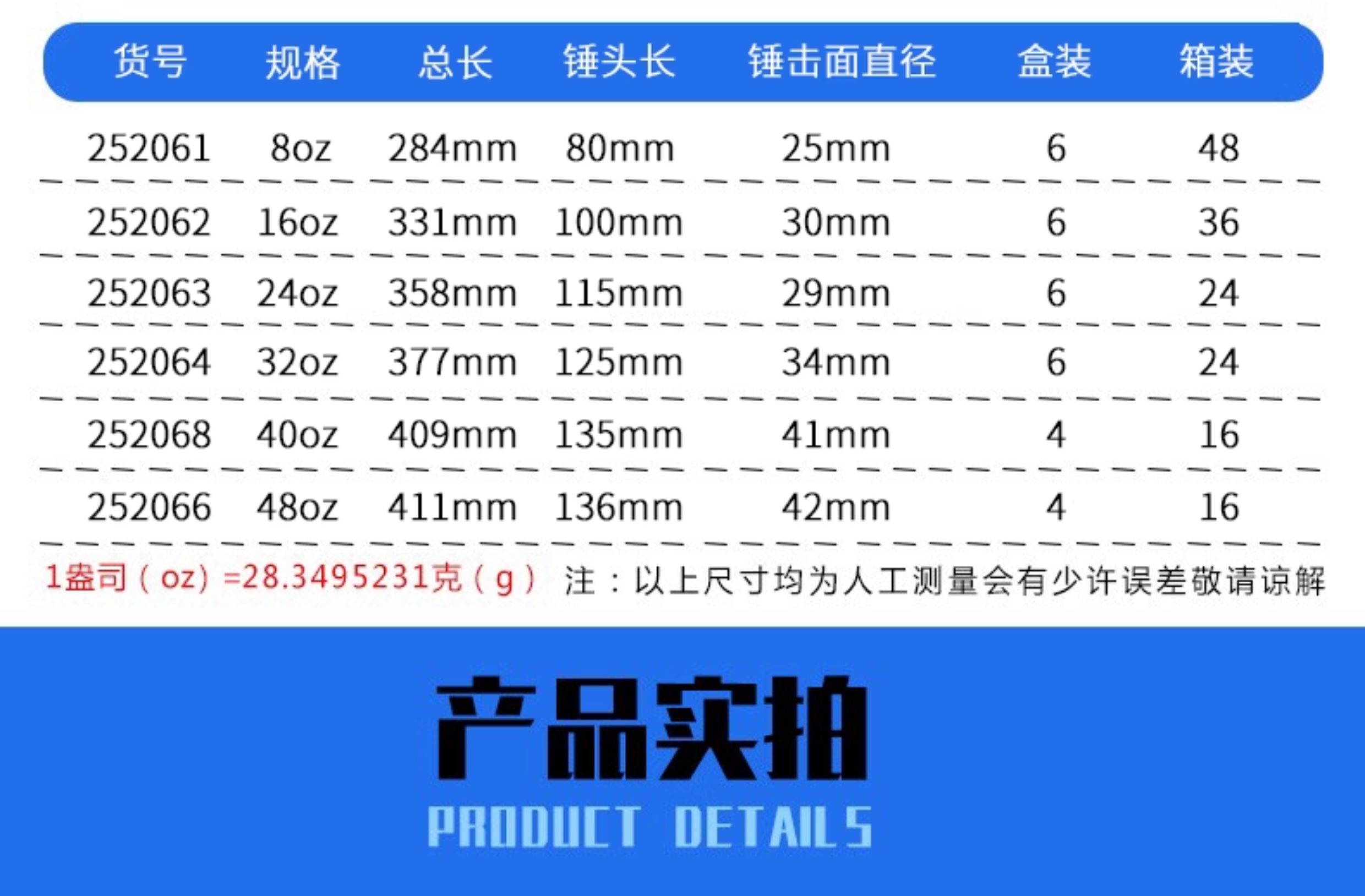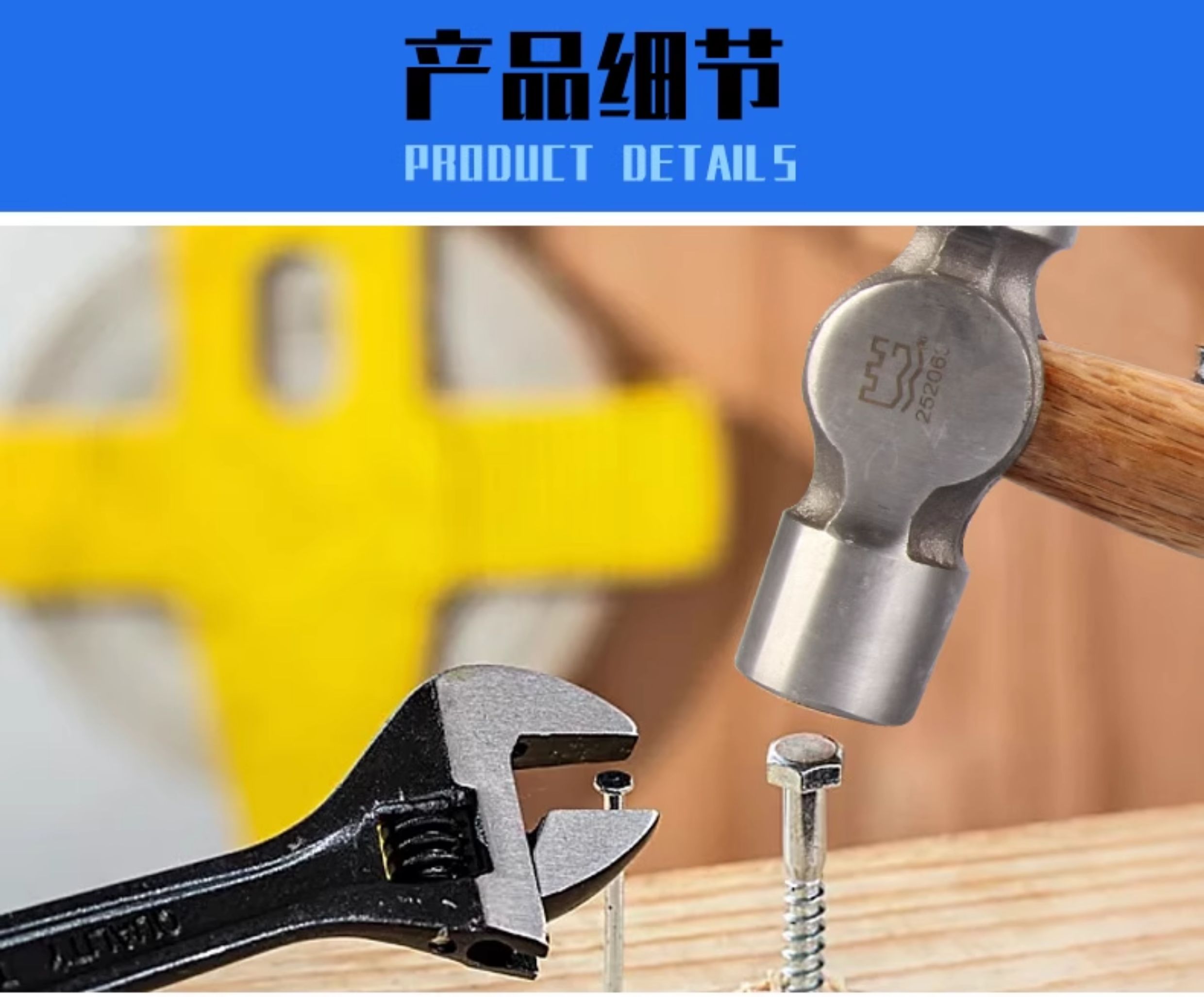 包装清单:1长城精工铁锤子榔头纯钢木柄圆头锤工业级手锤奶子锤工具1/2/3磅