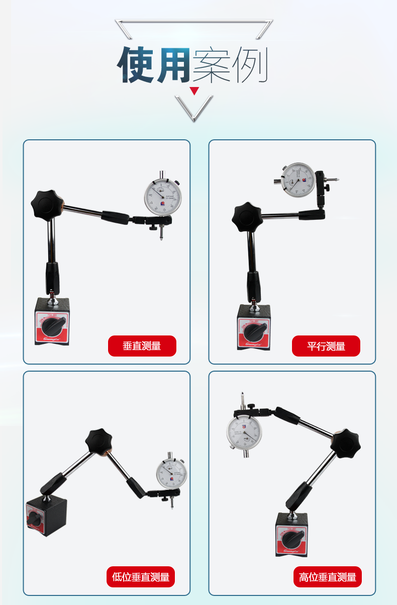 包装清单:1开关式万向强磁力杠杆百分表座磁性底座磁铁支架表架