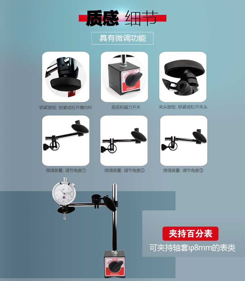 商品名称:开关式普通强磁力杠杆百分千分表座磁性底座磁铁支架表架