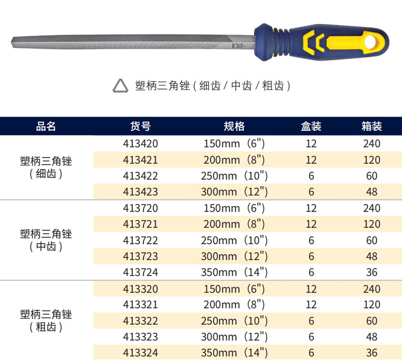 商品名称:长城精工 塑柄粗齿三角锉 钢锉扁平细中粗齿锉刀金属木工打磨工具平板挫刀 坚固耐用