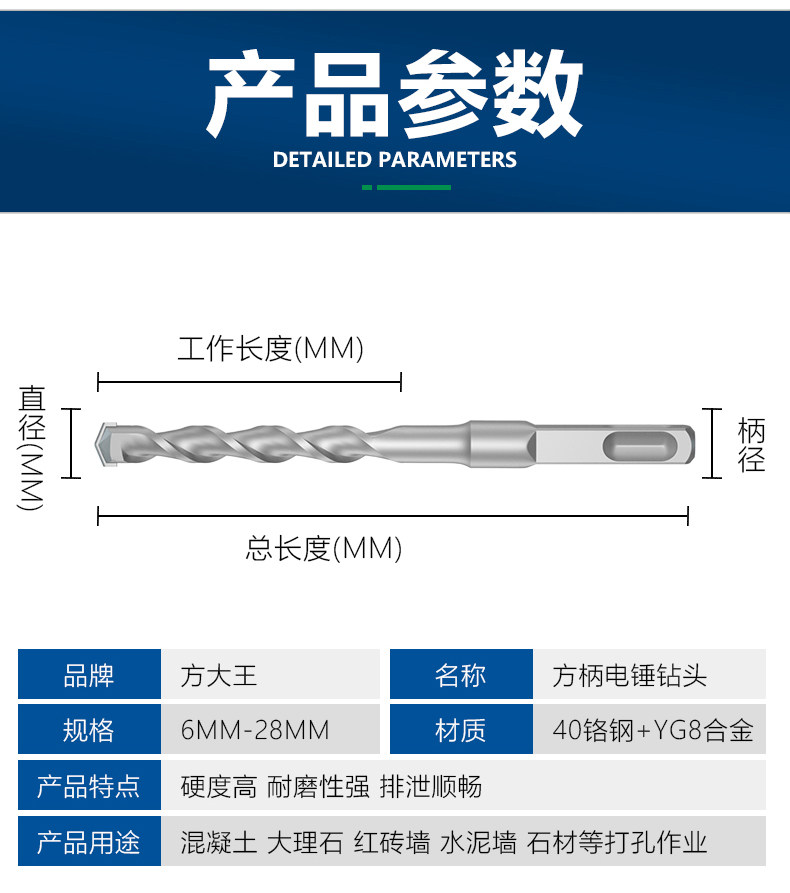 商品名称:钻头加长冲击电锤钻头混凝土两坑槽圆柄四坑方柄穿墙方头