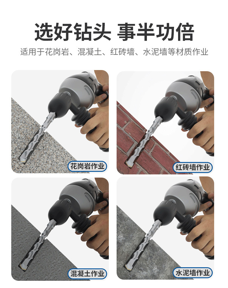 包装清单:1钻头加长冲击电锤钻头混凝土两坑槽圆柄四坑方柄穿墙方头