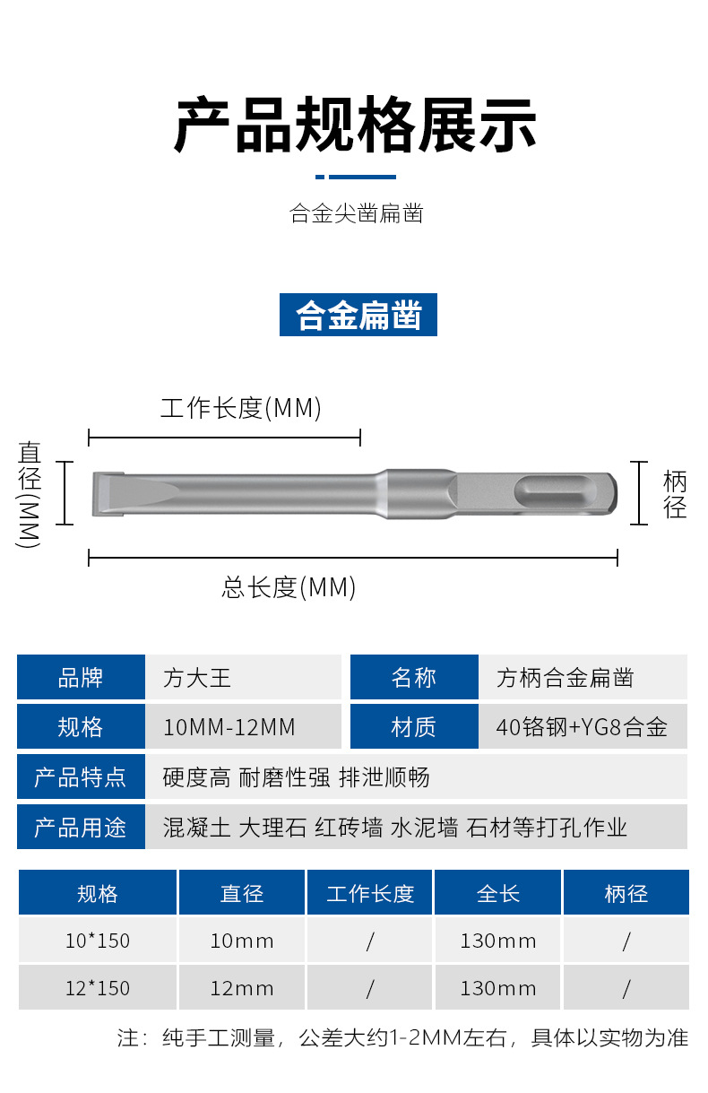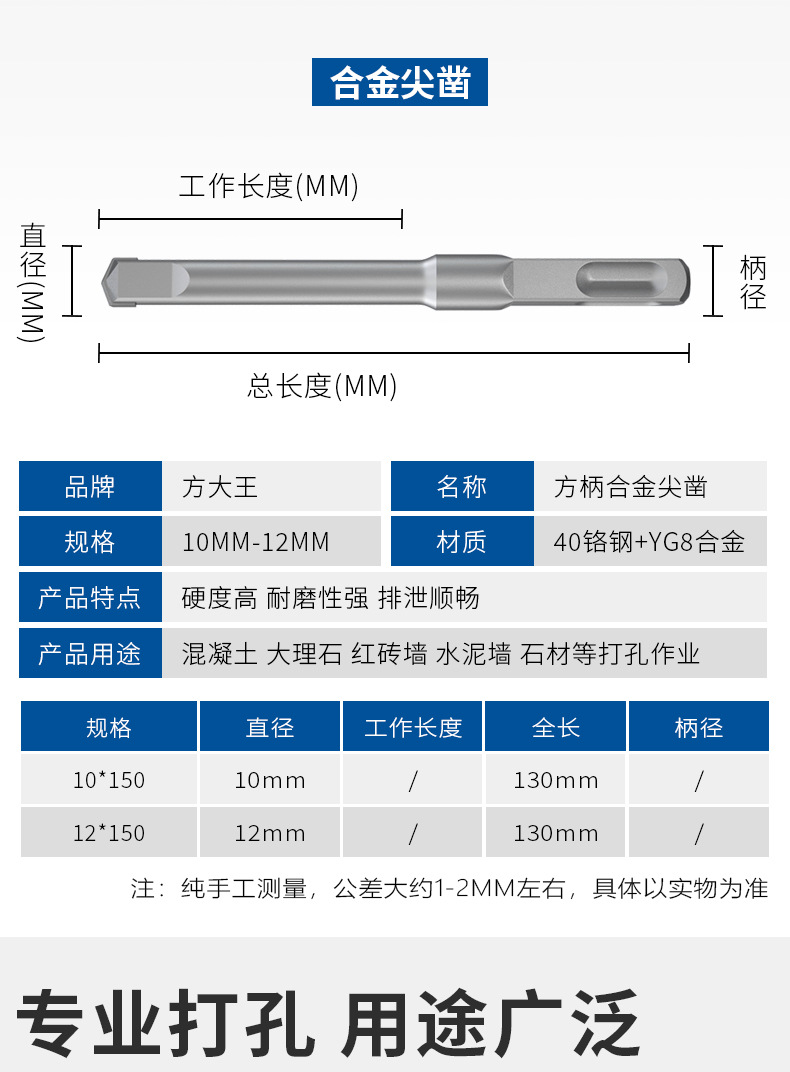 包装清单:1方大王钻头电锤钻头光杆无螺纹钻头合金凿子打薄膜