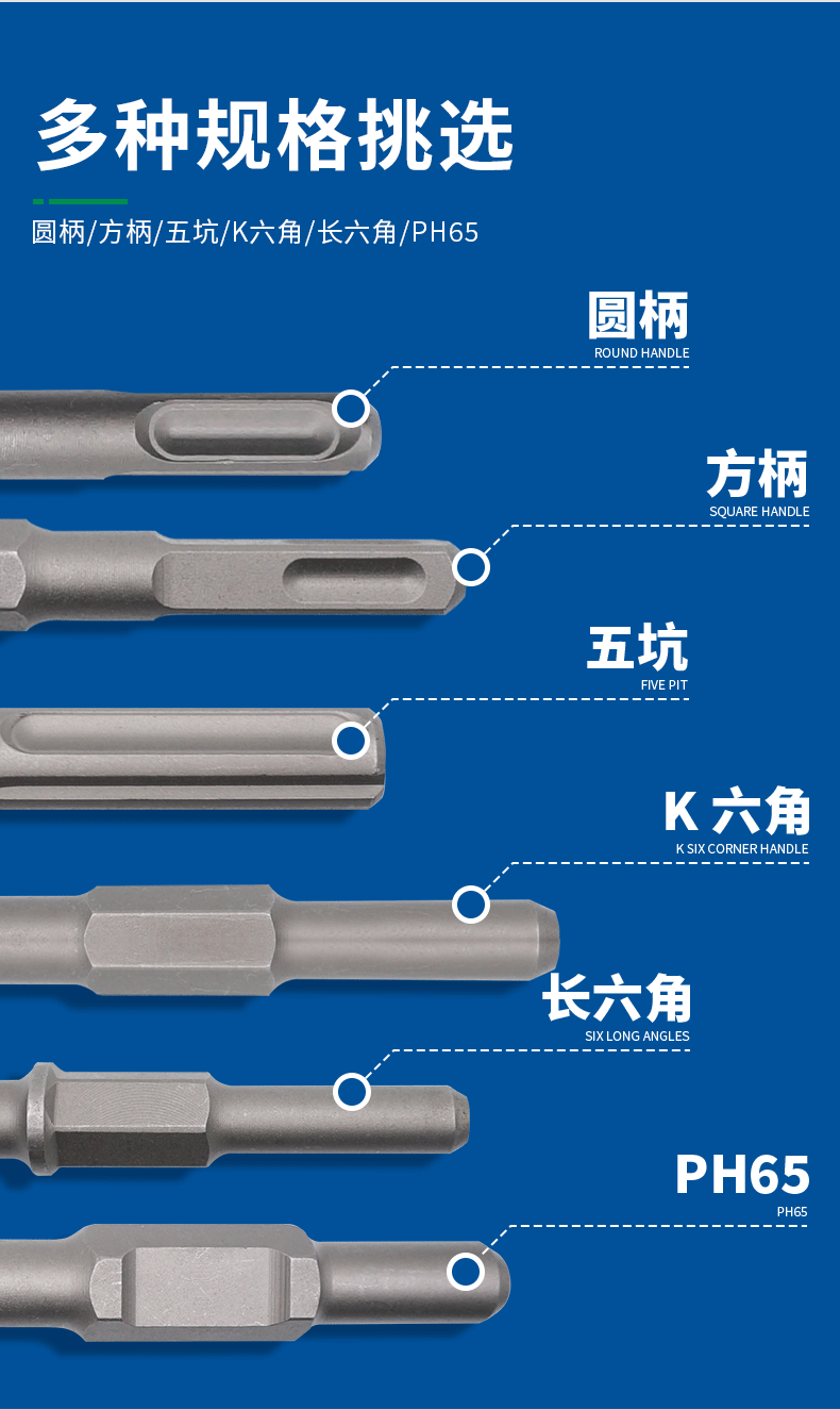 包装清单:1方柄圆柄五坑六角K六角尖扁凿 电锤凿 17*280尖扁凿