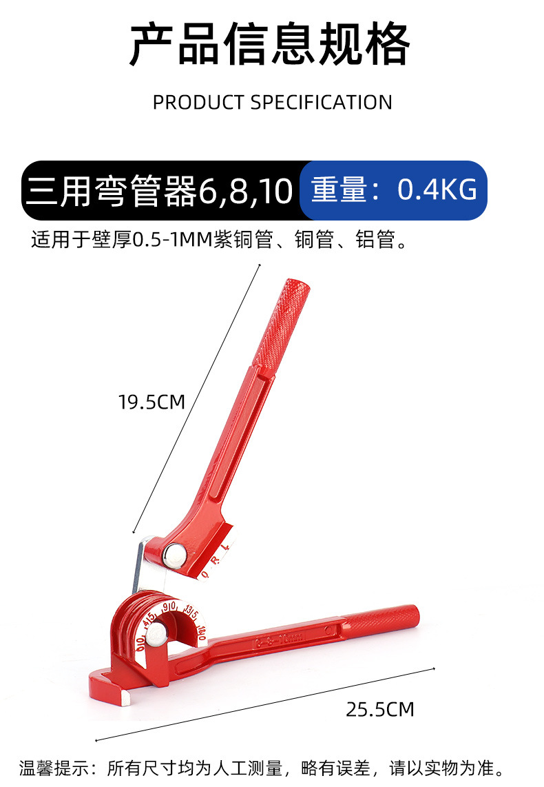 包装清单:1铜管弯管器杠杆式铜管弯管器手动弯管器铜铝管不锈钢管6-22mm空调管三合一公制管工具