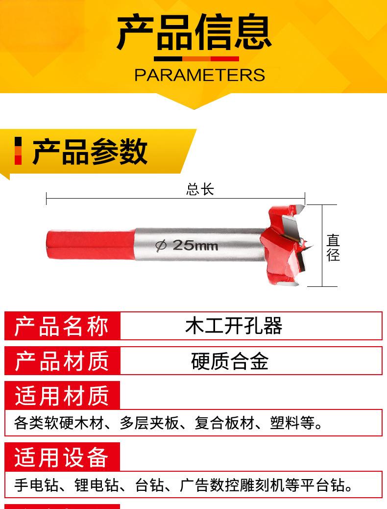 商品名称:木工专用开孔器 门铰链盲孔通孔木板打孔器硬质合金木用扩孔器