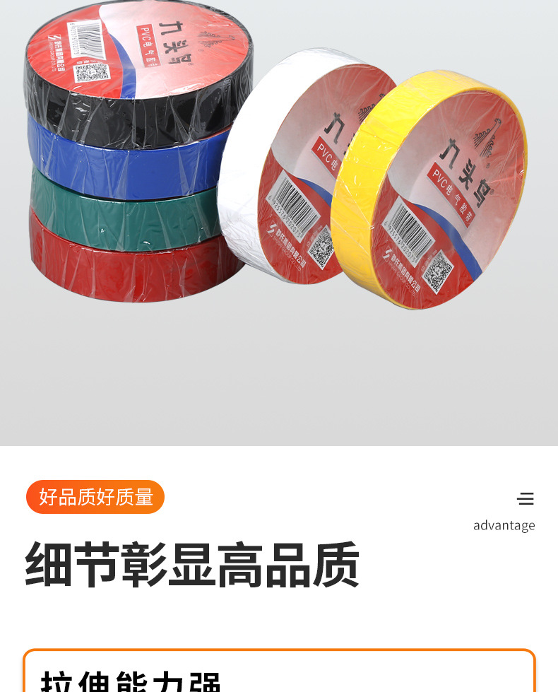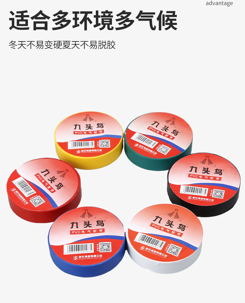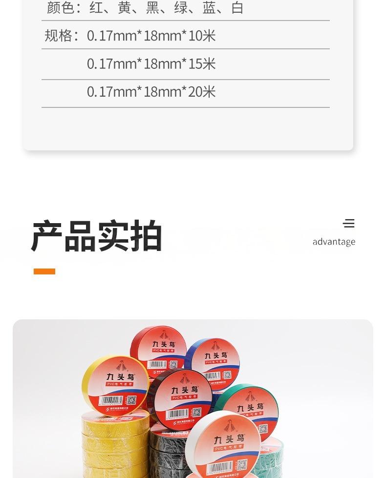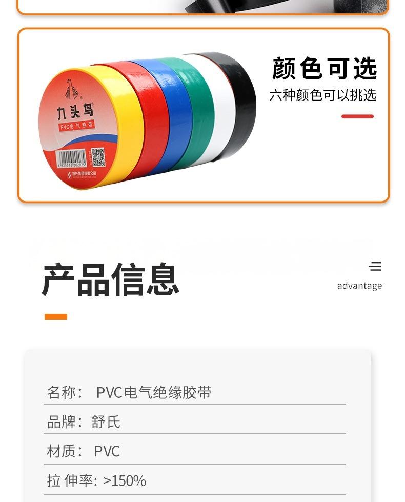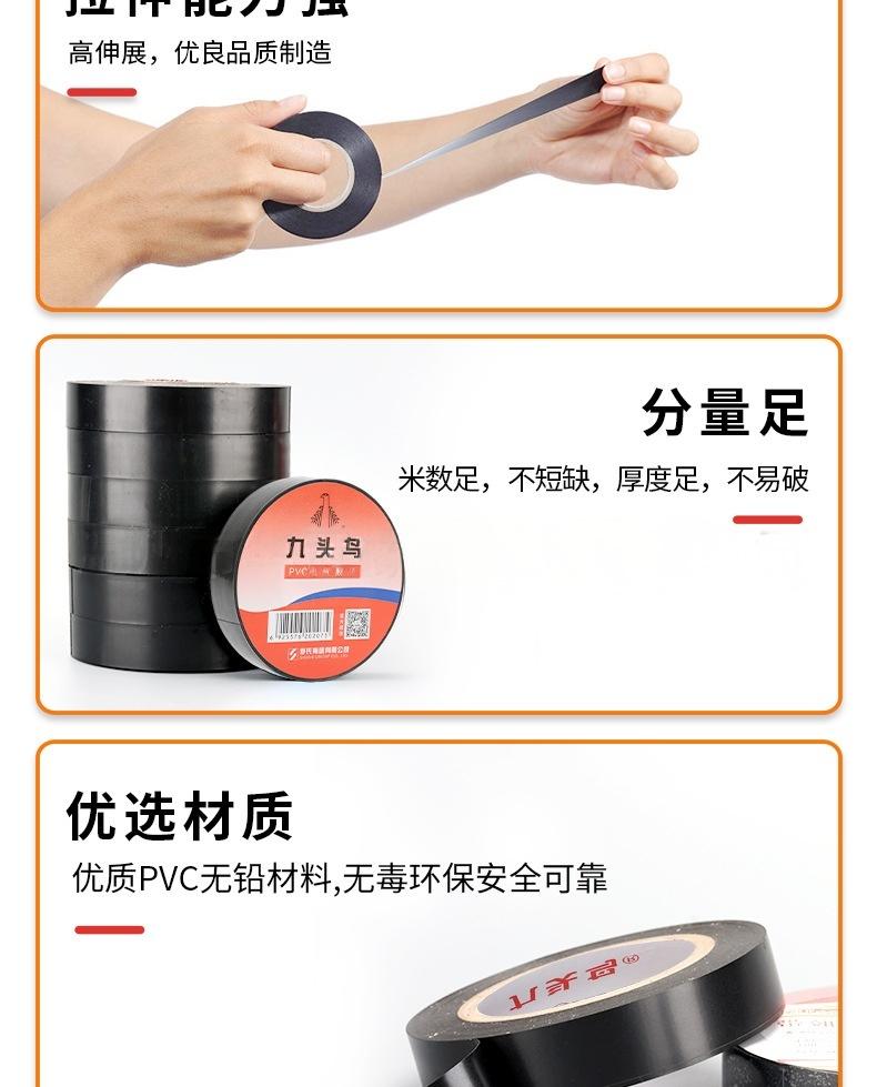 商品名称:九头鸟胶布PVC电工胶带防水绝缘胶布批发黑色15-20米