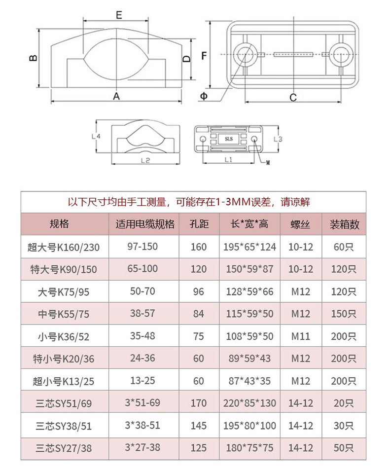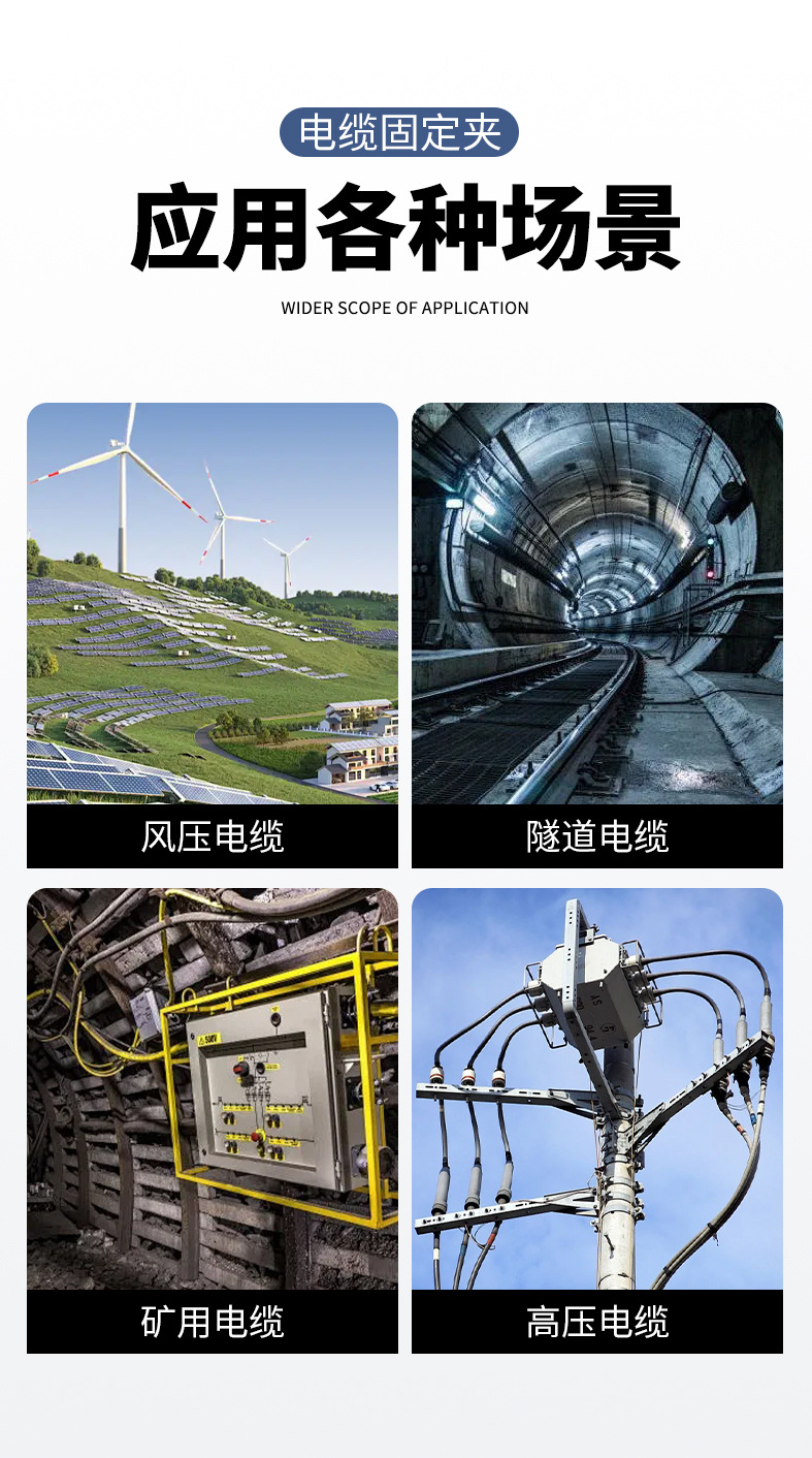 包装清单:200高压柜电缆夹单三芯电缆线固定夹吊塔线防火阻燃尼龙电缆抱箍管卡