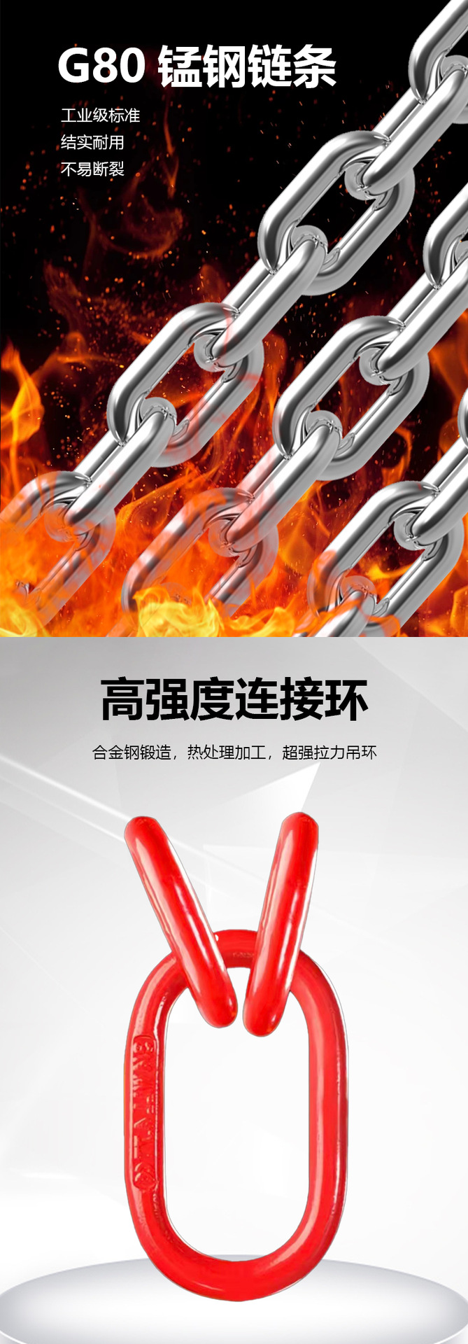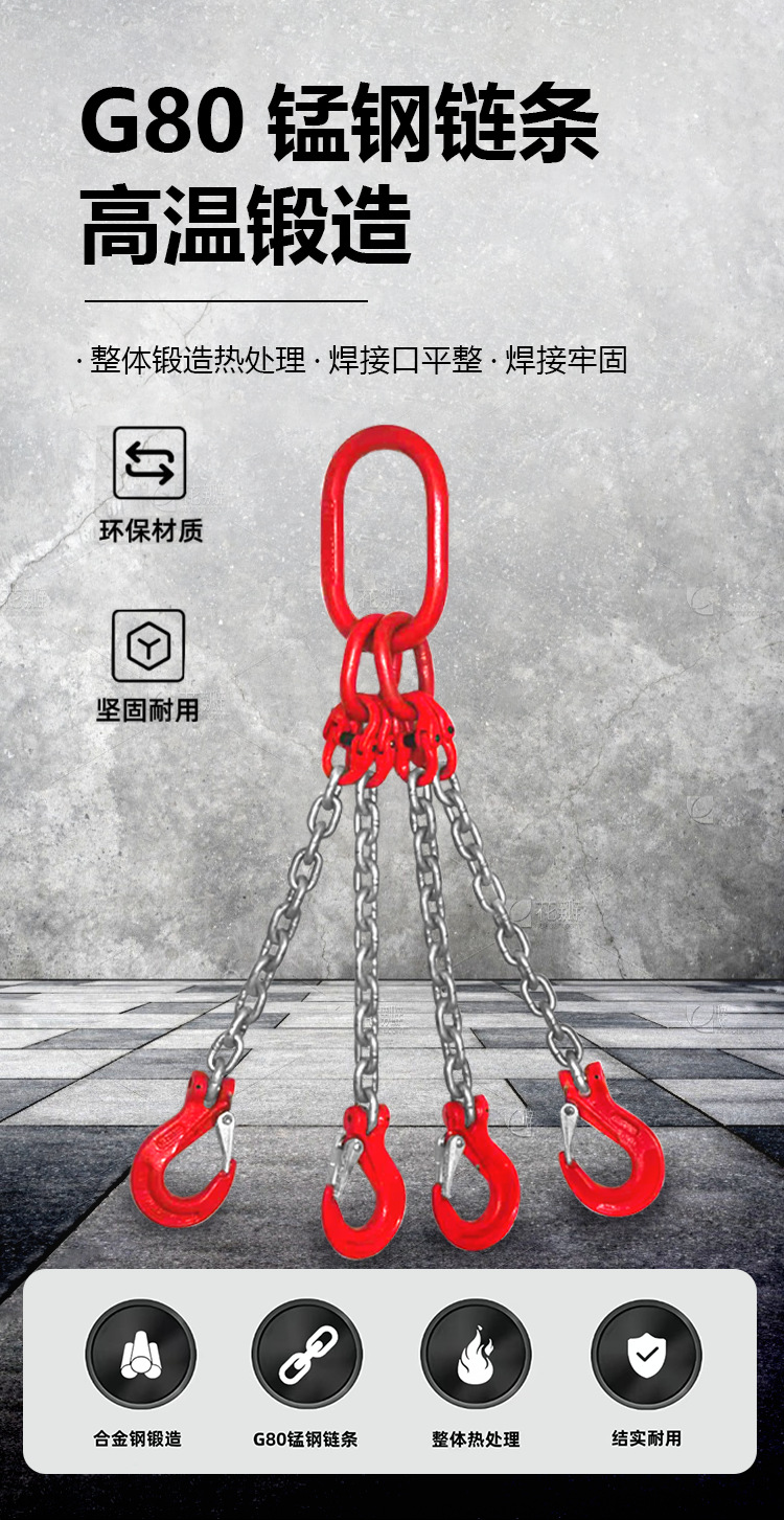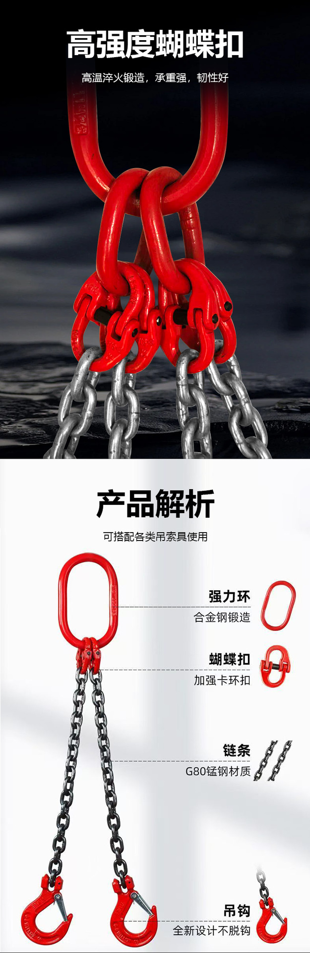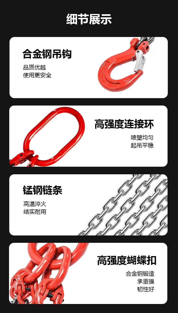包装清单:1成套吊索具双腿四腿起重吊链g80链条吊钩吊环组合吊具多规格定制