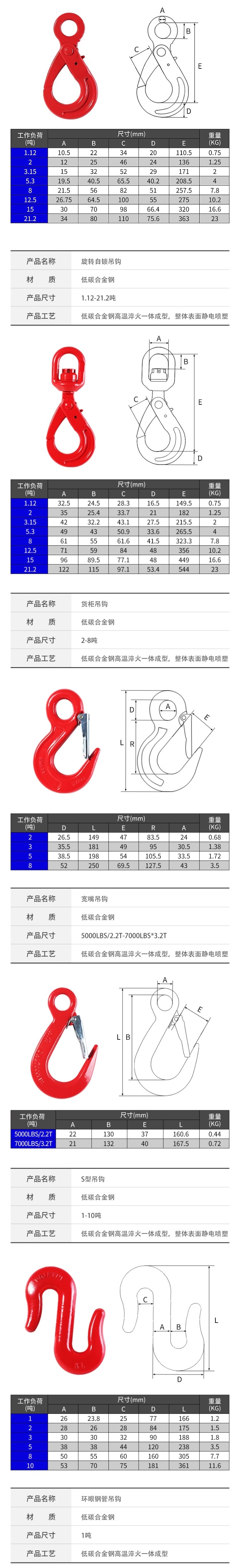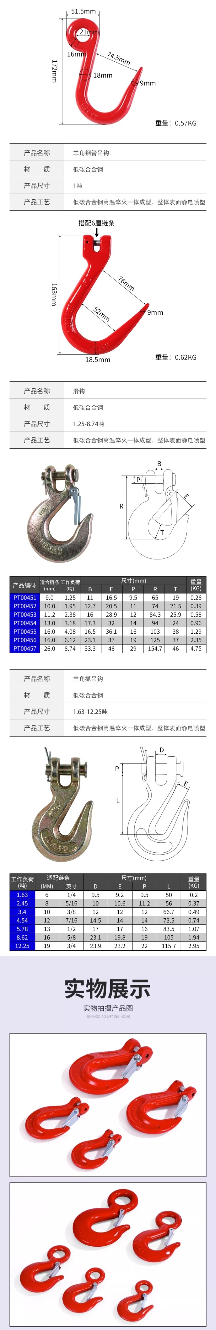 包装清单:1大开口钩羊角钩货柜钩钢管钩环眼钩旋转吊钩链条吊钩