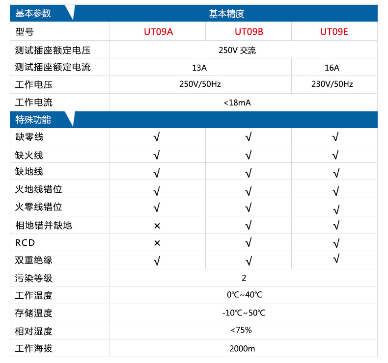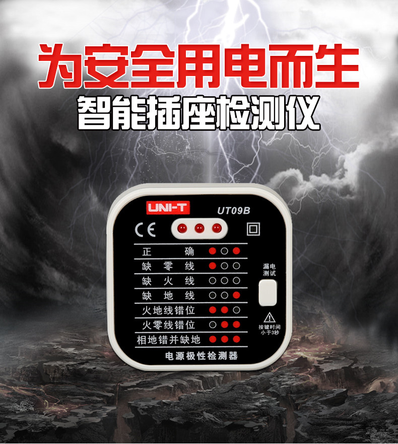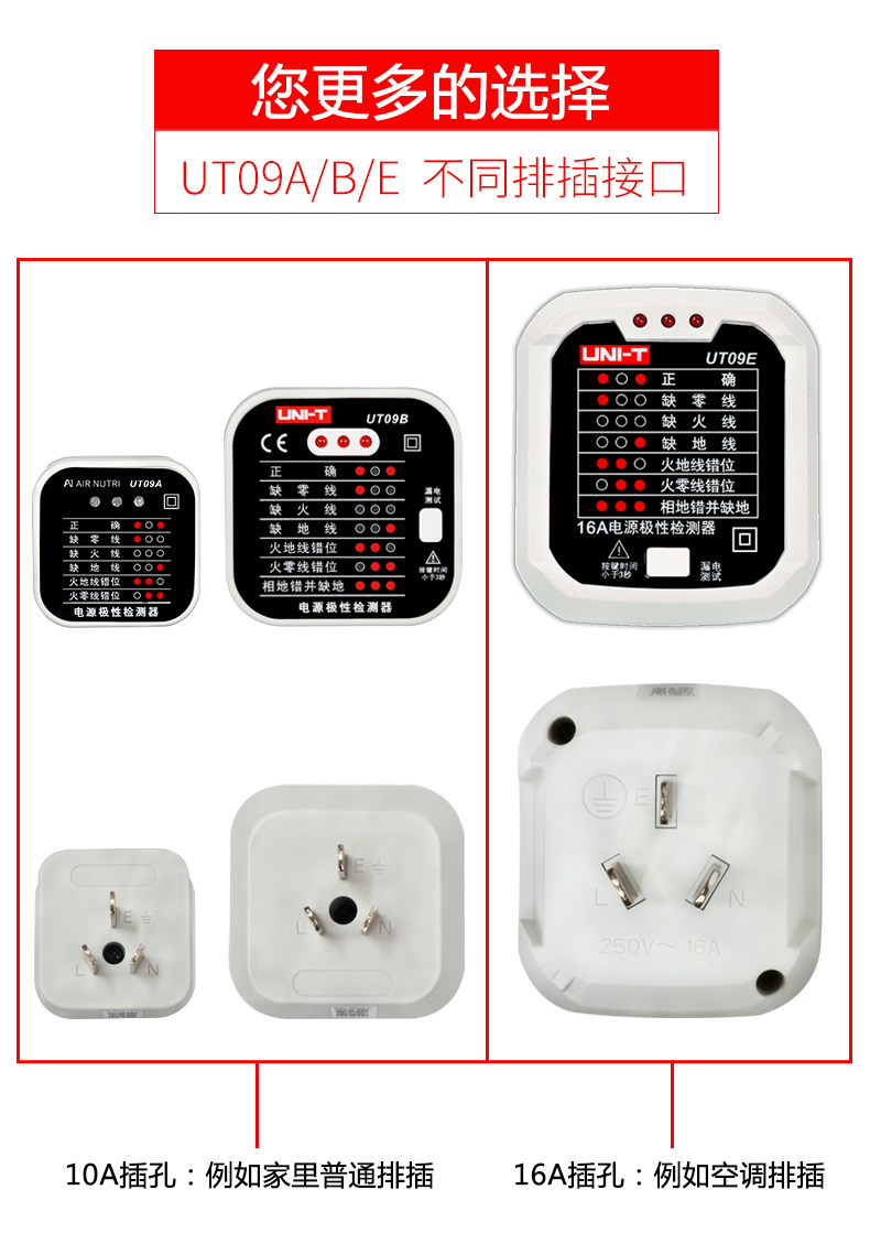 UT09A/09B插座检测仪地线零线火线插头极性验电器相位检测