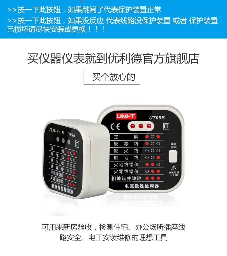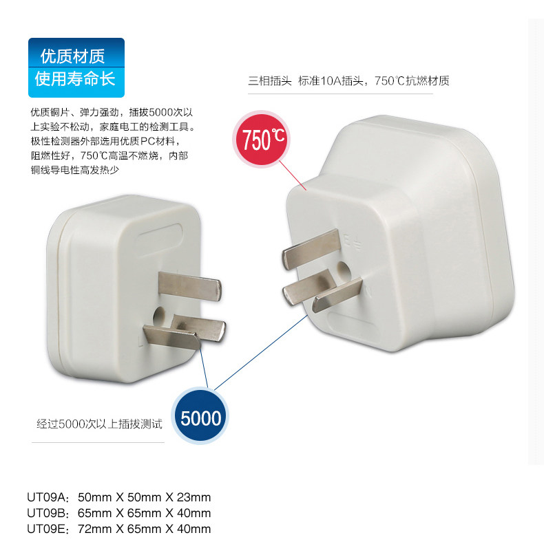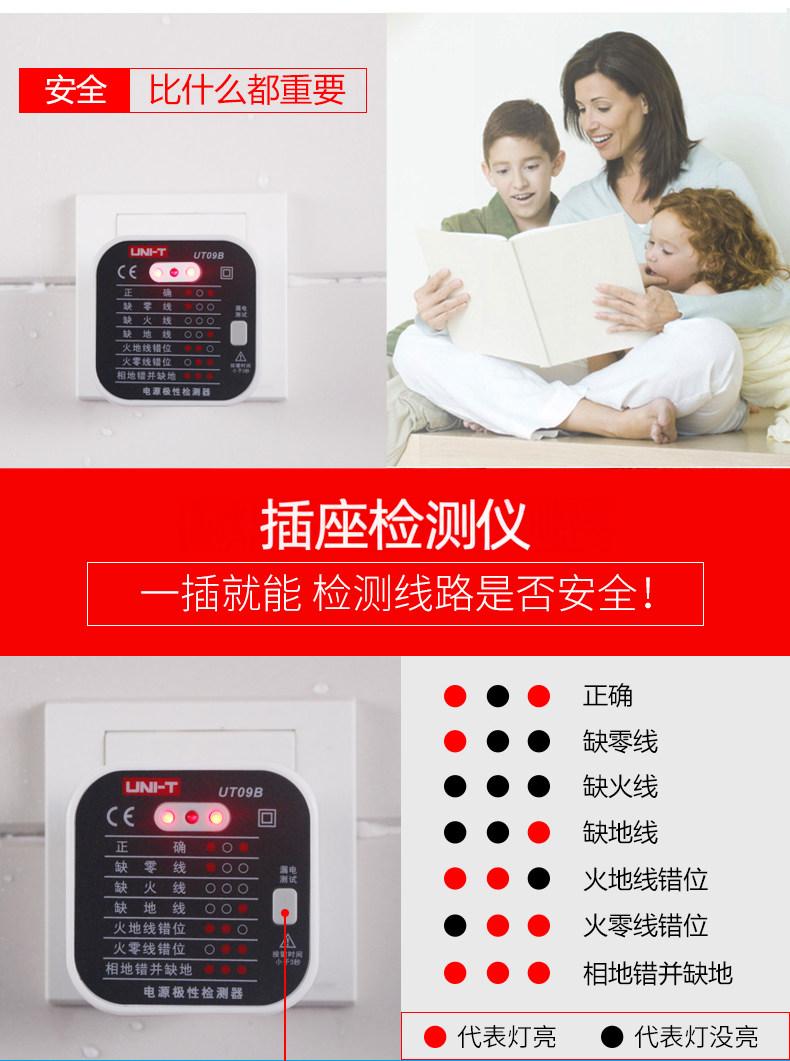 商品名称:UT09A/09B插座检测仪地线零线火线插头极性验电器相位检测
