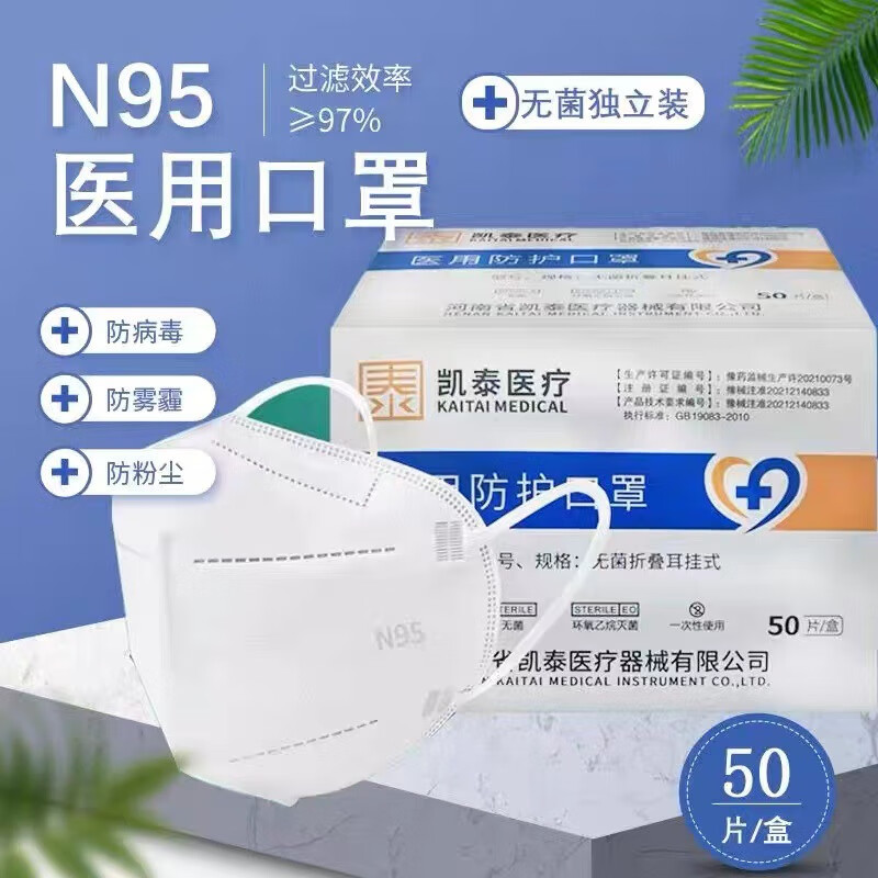 商品名称:凯泰防病毒N95型独立装口罩口罩一次性防护口罩 折叠挂耳 N95口罩独立包装款
