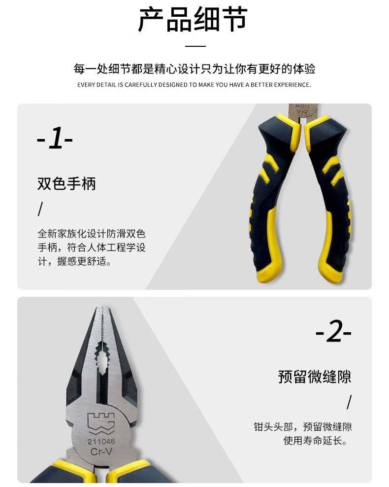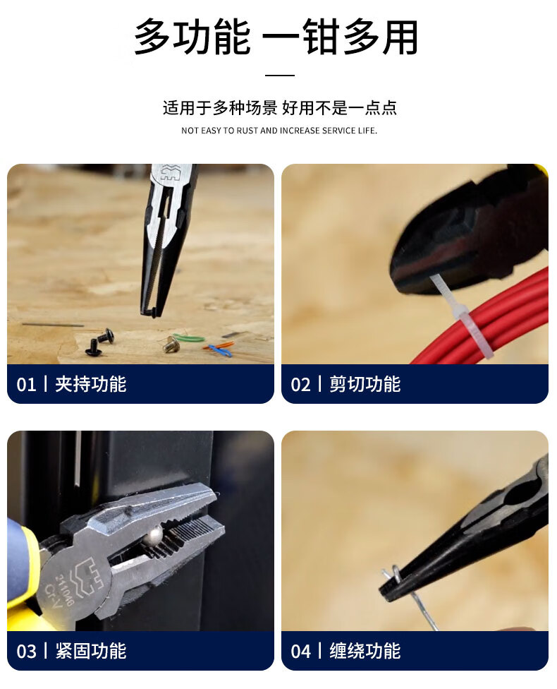 包装清单:1长城精工老虎钳工业级省力钢丝钳手钳尖嘴钳子斜嘴钳剪钳斜口钳尖头钳 钢丝钳/尖嘴钳/斜嘴钳
