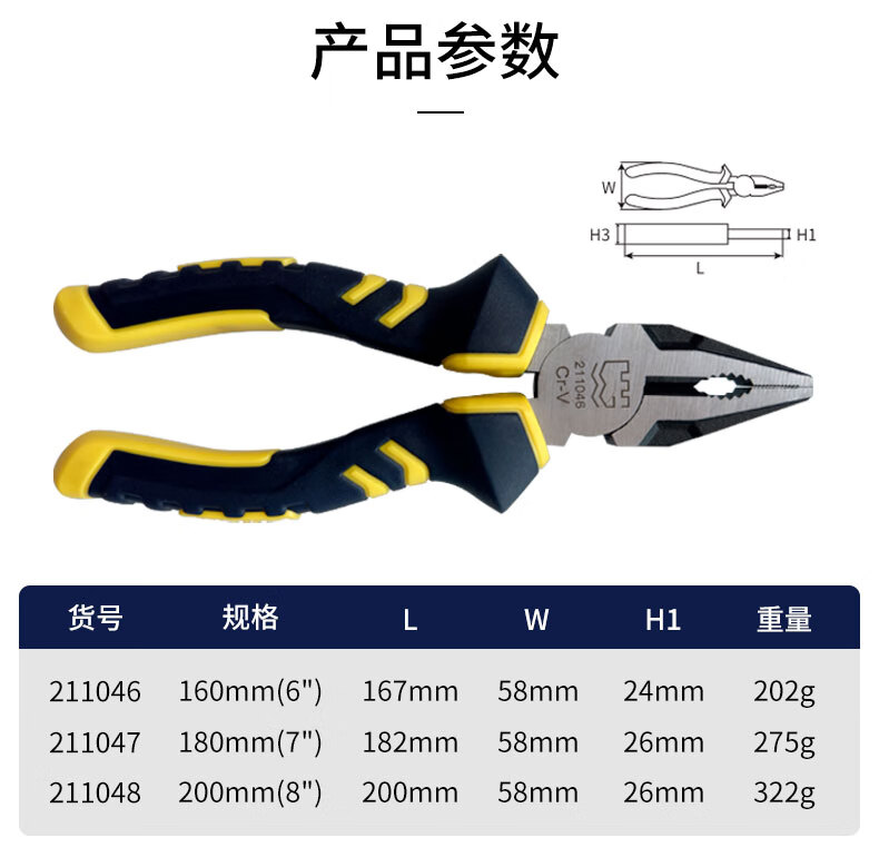 商品名称:长城精工老虎钳工业级省力钢丝钳手钳尖嘴钳子斜嘴钳剪钳斜口钳尖头钳 钢丝钳/尖嘴钳/斜嘴钳