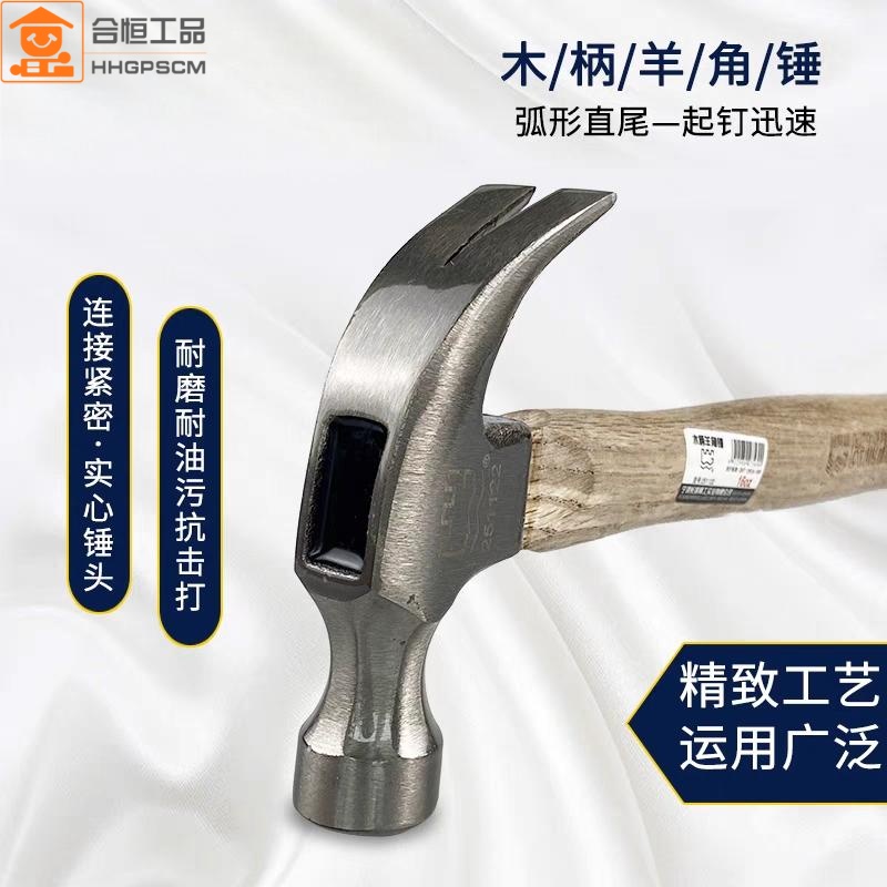 长城精工木柄羊角锤木匠工具家用工具木柄榔头木工锤1磅0.5磅1.5
