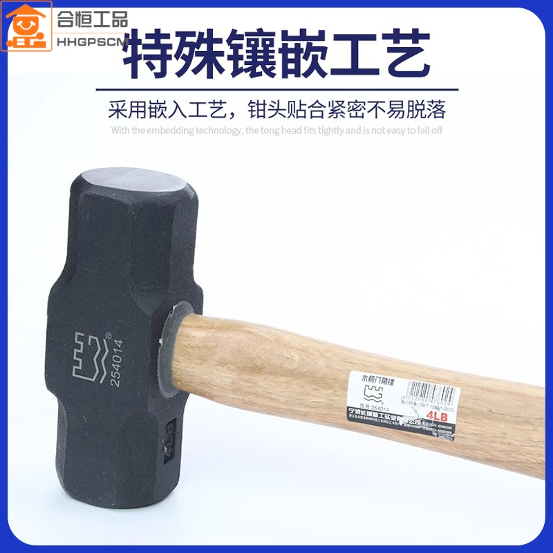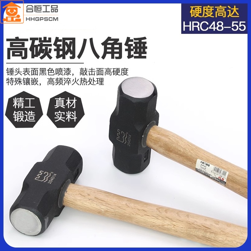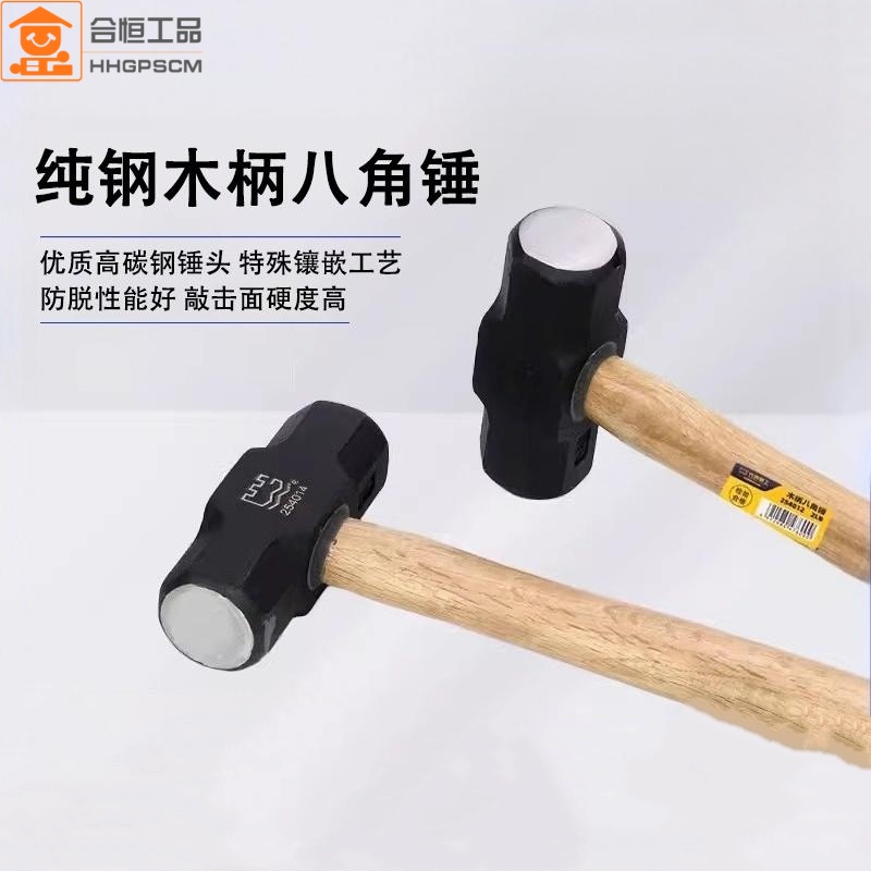 长城精工纯钢木柄八角锤子大铁锤重型榔头方头3/4/6/8/10/12/20磅