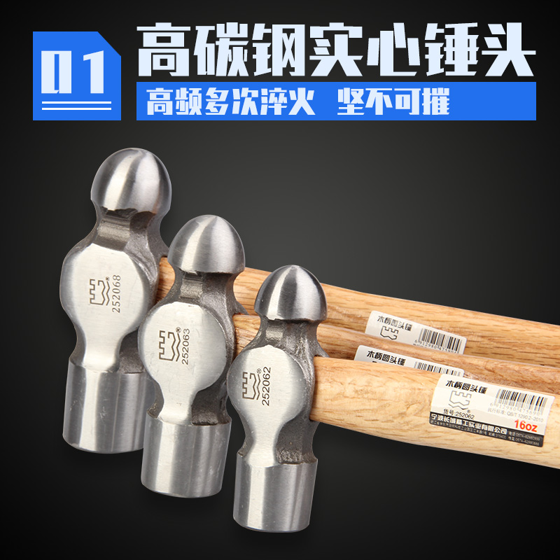 长城精工圆头锤子工业级手锤铁锤榔头圆头奶子锤8/16/24/36/48oz