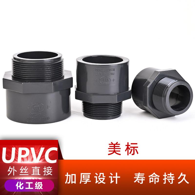 美标尺寸UPVC外丝直接化工外牙螺纹工业PVC管道接头水管直通对接