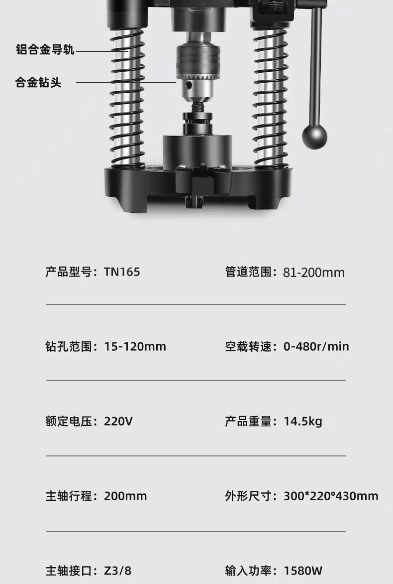 包装清单:1消防管道专用电动开孔机镀锌管打孔机钢管开口器不锈钢圆管开孔器
