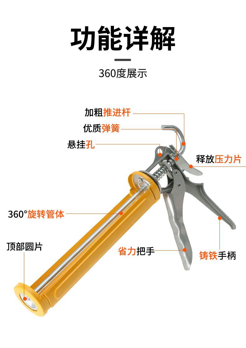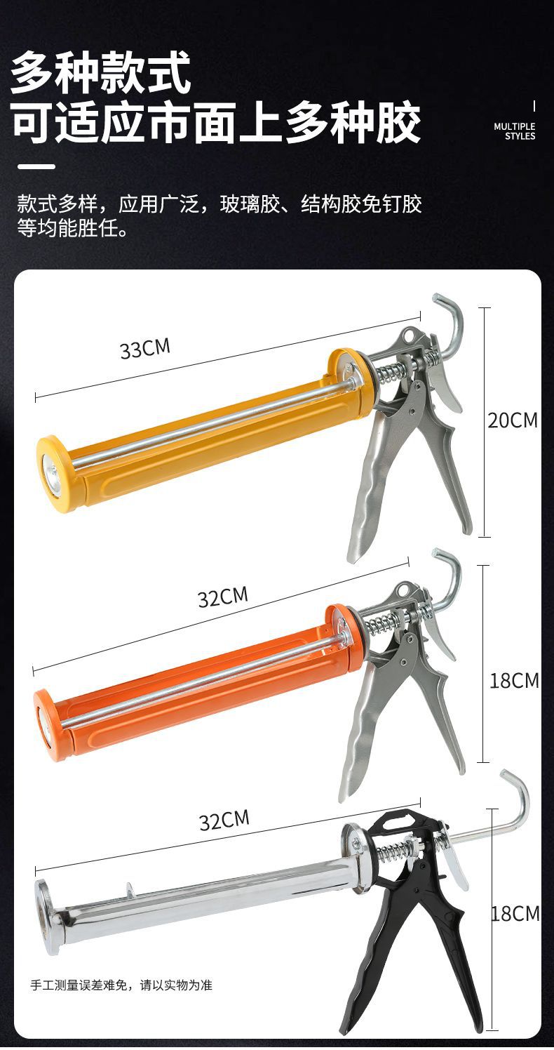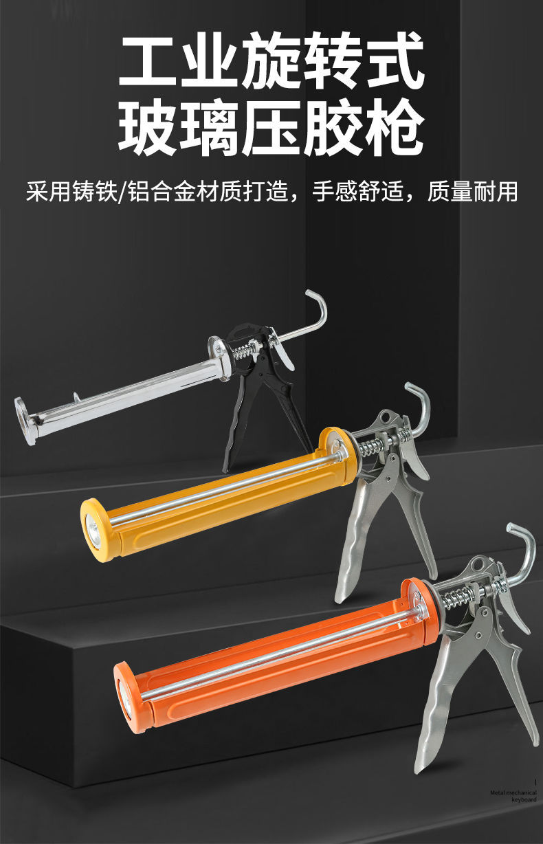 包装清单:1玻璃胶枪通用型可旋转胶枪省力加厚胶枪瓷白透明胶美缝胶专用胶枪